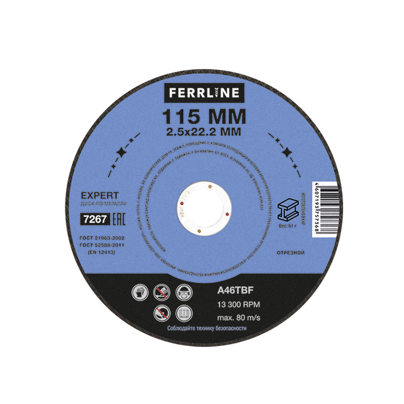 Круг отрезной по металлу FerrLine Expert 115 х 2,5 х 22,2 мм A46TBF купить в Москве с доставкой по всей России | ProtosMarket.ru