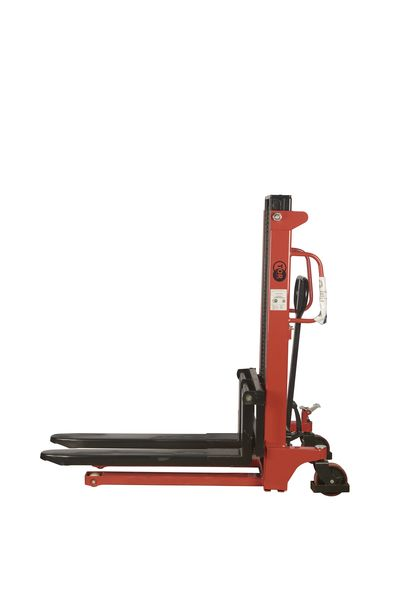 - Чтобы привести в действие механический штабелеукладчик, оператору приходится задействовать физическую силу. Модели с ножным гидравлическим приводом в этом отношении удобнее ручных.