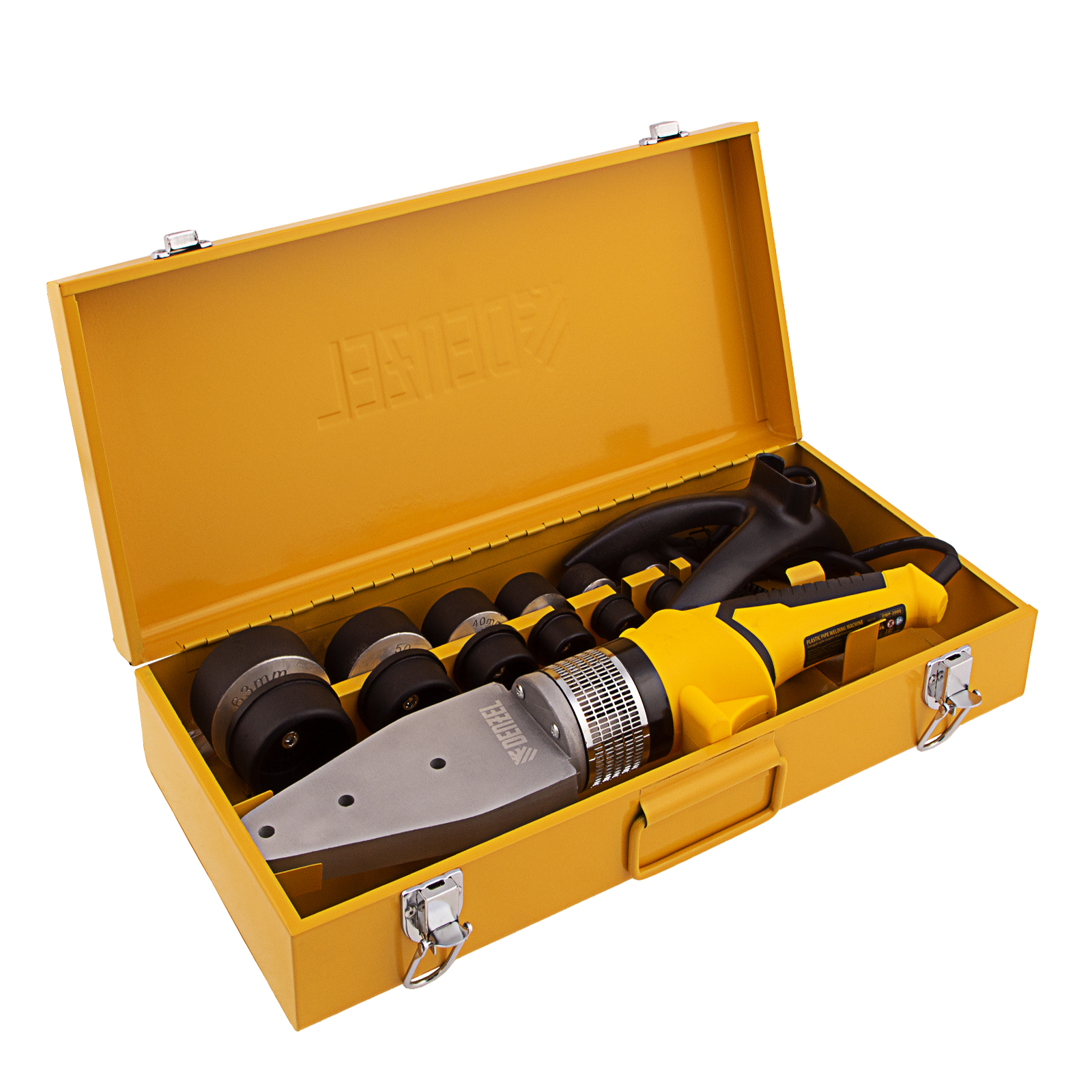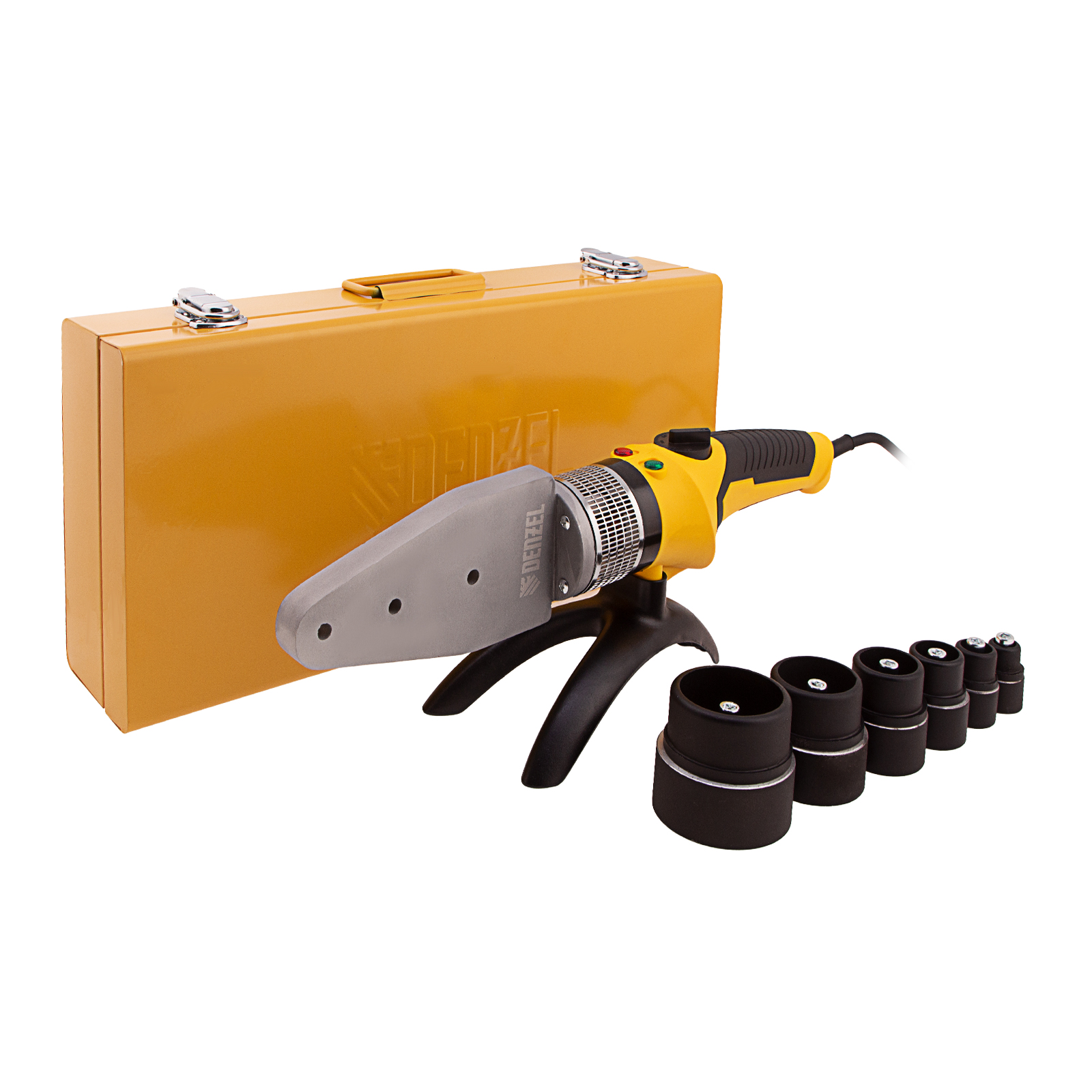 Аппарат для сварки пластиковых труб DWP-2000, Х-Pro, 2000 Вт, 300 град, комплект насадок, 20-63 мм Denzel в Екатеринбурге