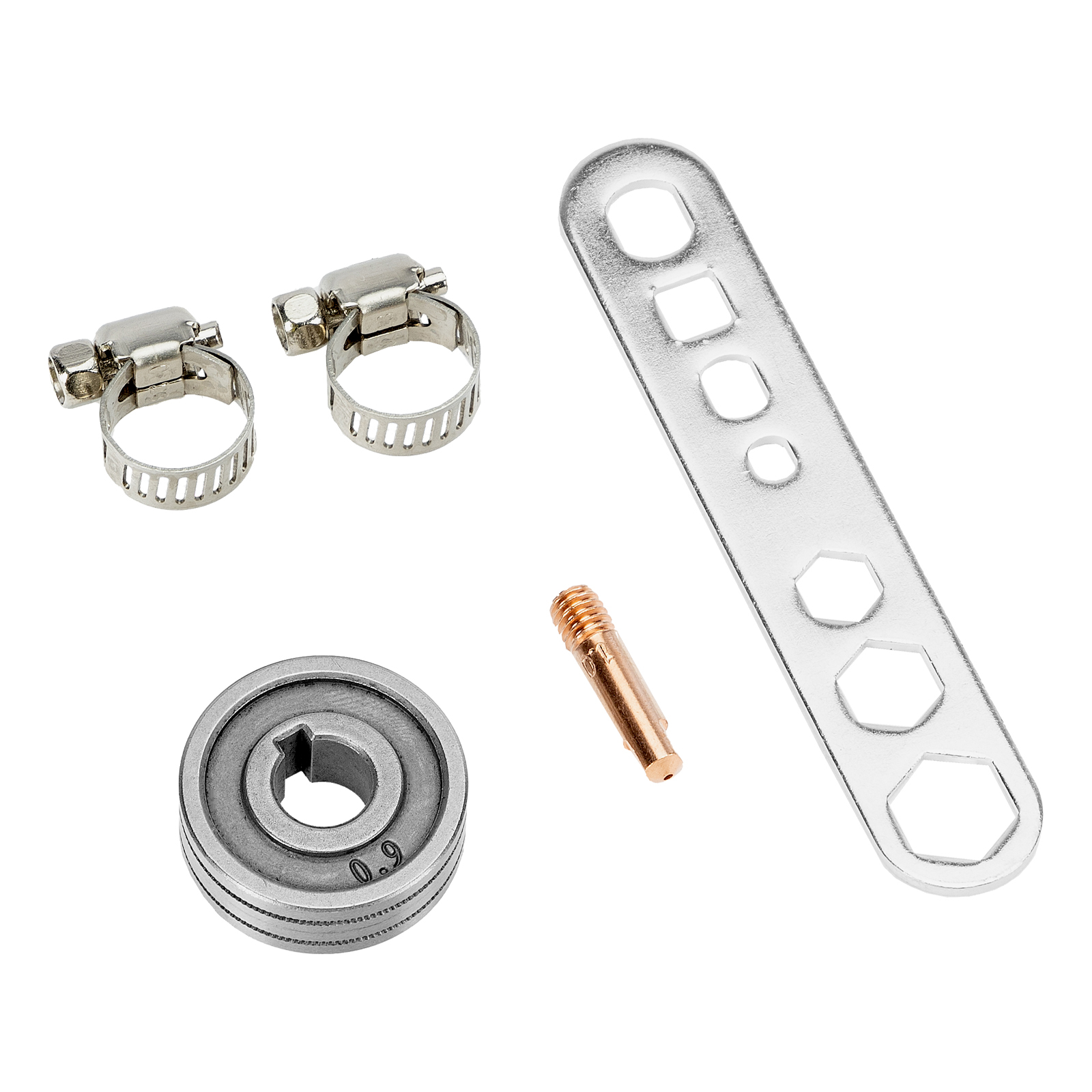 - Продуманная комплектация — аппарат поставляется с горелкой MIG, газовым шлангом и сварочными проводами (с электрододержателем и зажимом «земля»).