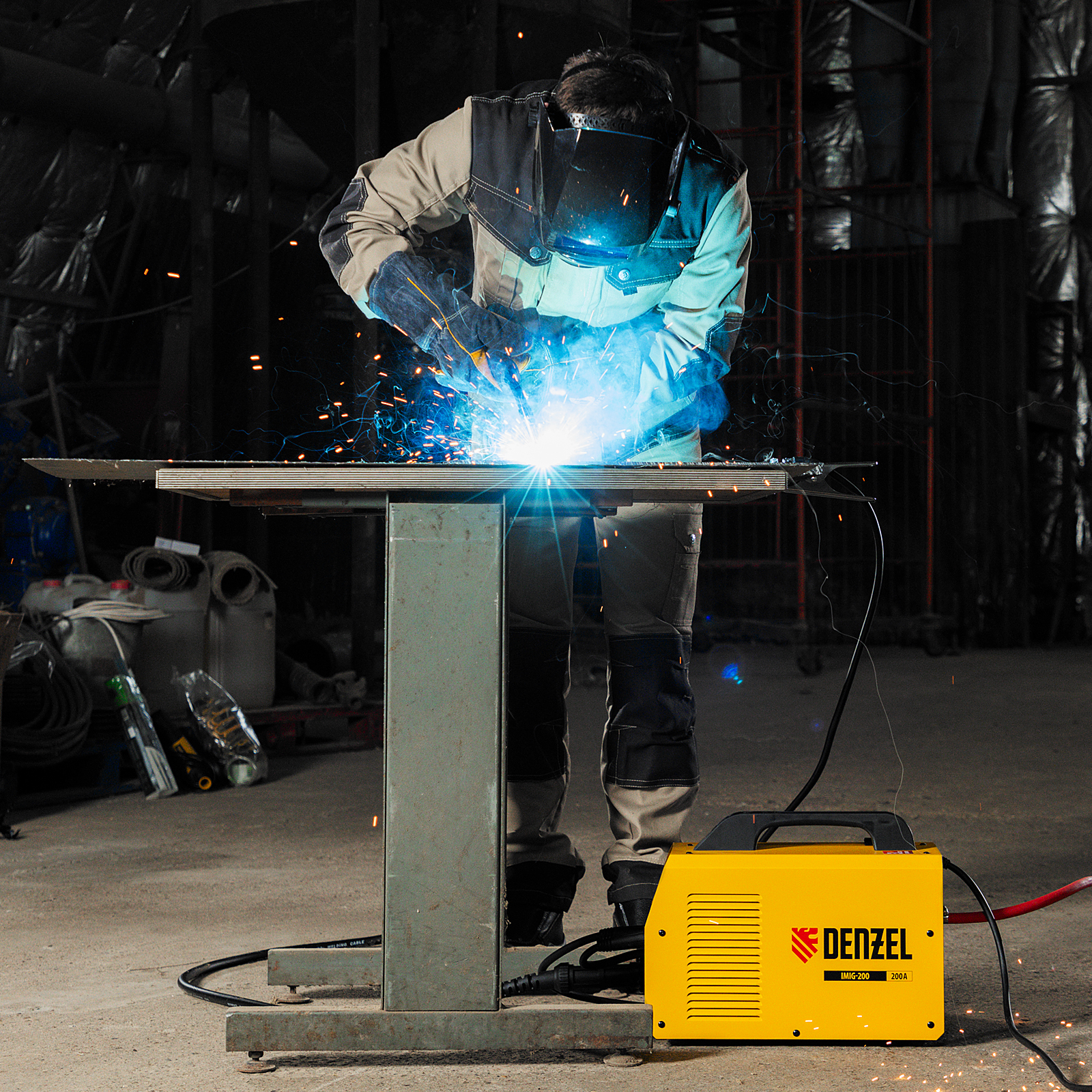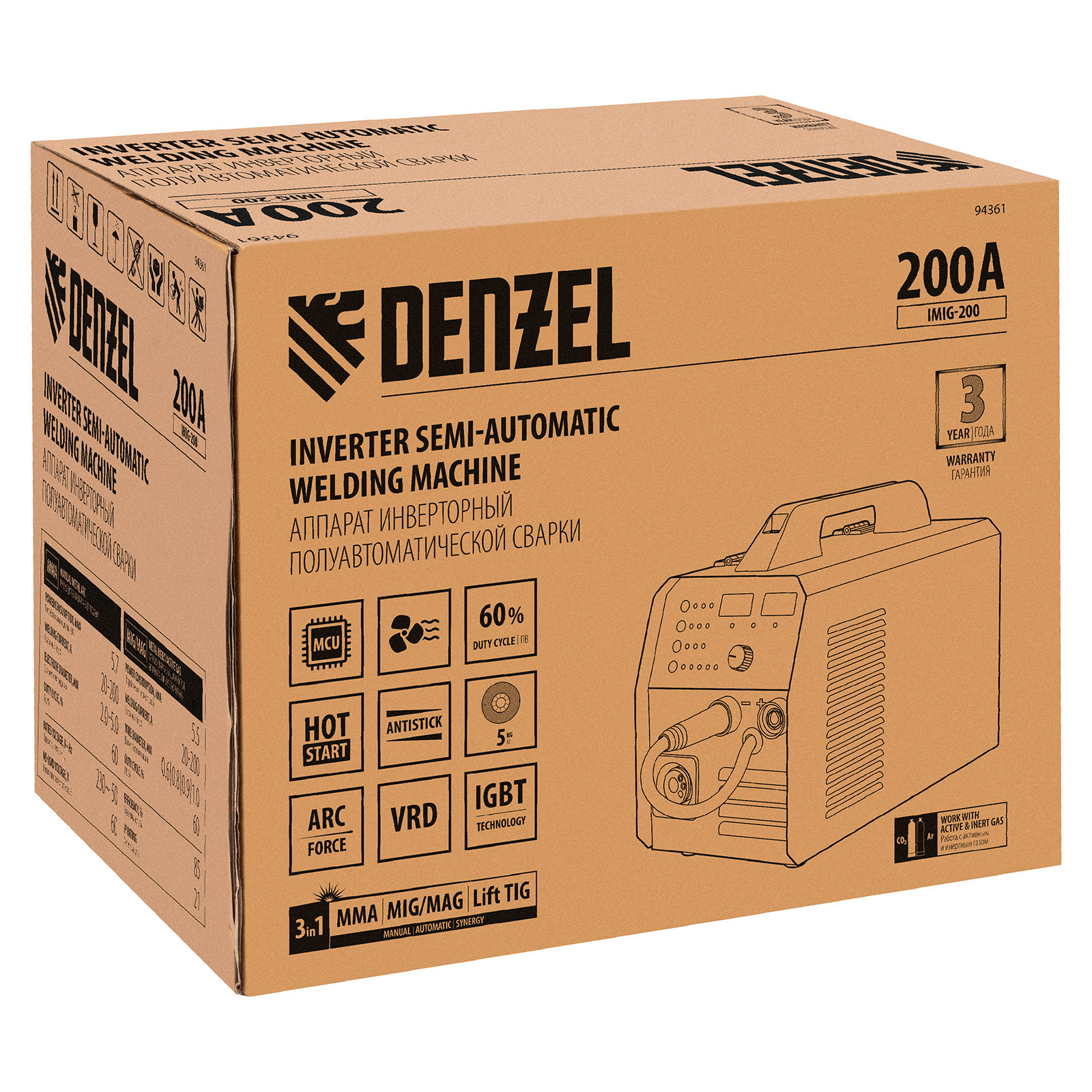Аппарат инвертор. полуавтомат. cварки IMIG-200, 200 А, ПВ 60%, катушка 5 кг Denzel в Екатеринбурге