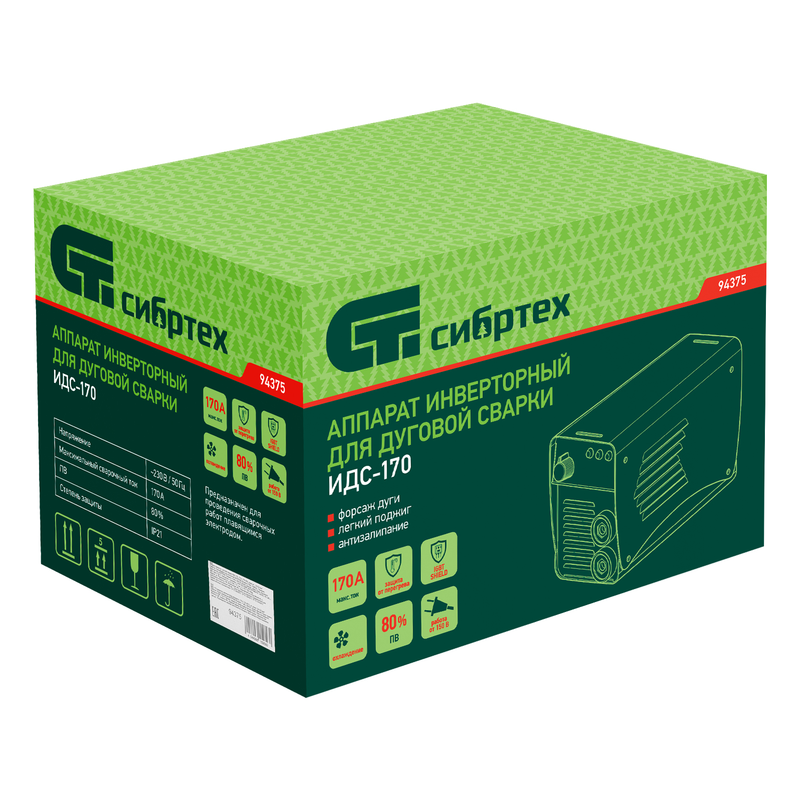 Аппарат инверторный дуговой сварки ИДС-170, 170 А, ПВ 80%, диаметр электрода 1.6-3.2 мм Сибртех в Екатеринбурге