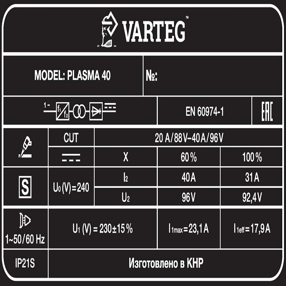 Аппарат плазменной резки VARTEG PLASMA 40
