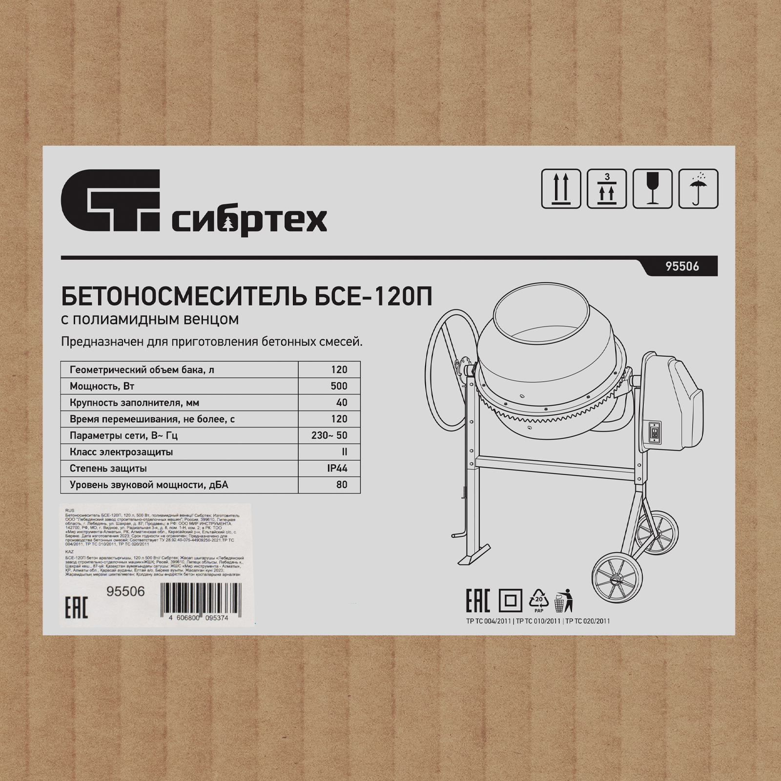 Бетоносмеситель БСЕ-120П, 120 л, 500 Вт, полиамидный венец Сибртех в Екатеринбурге