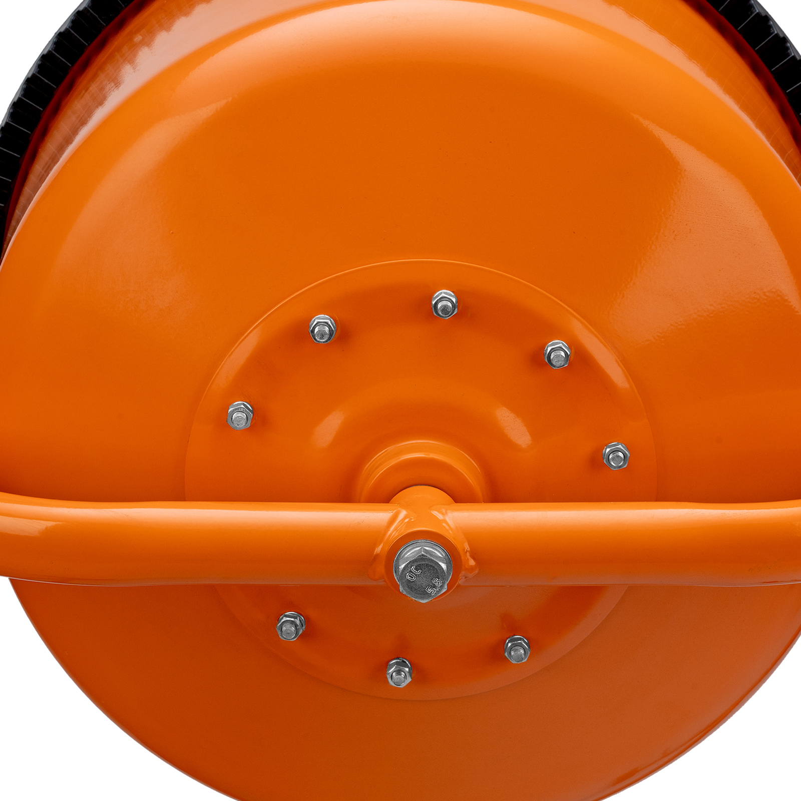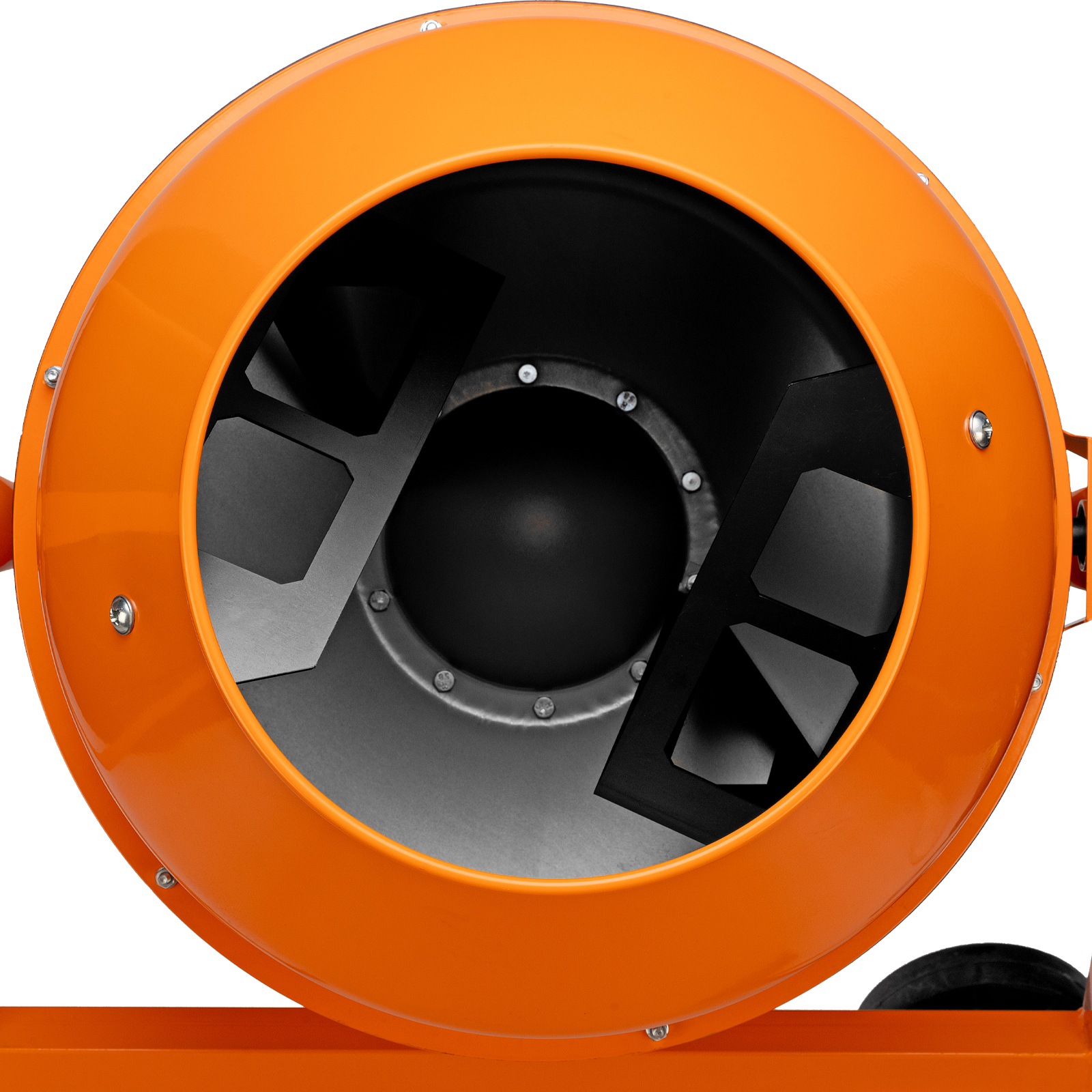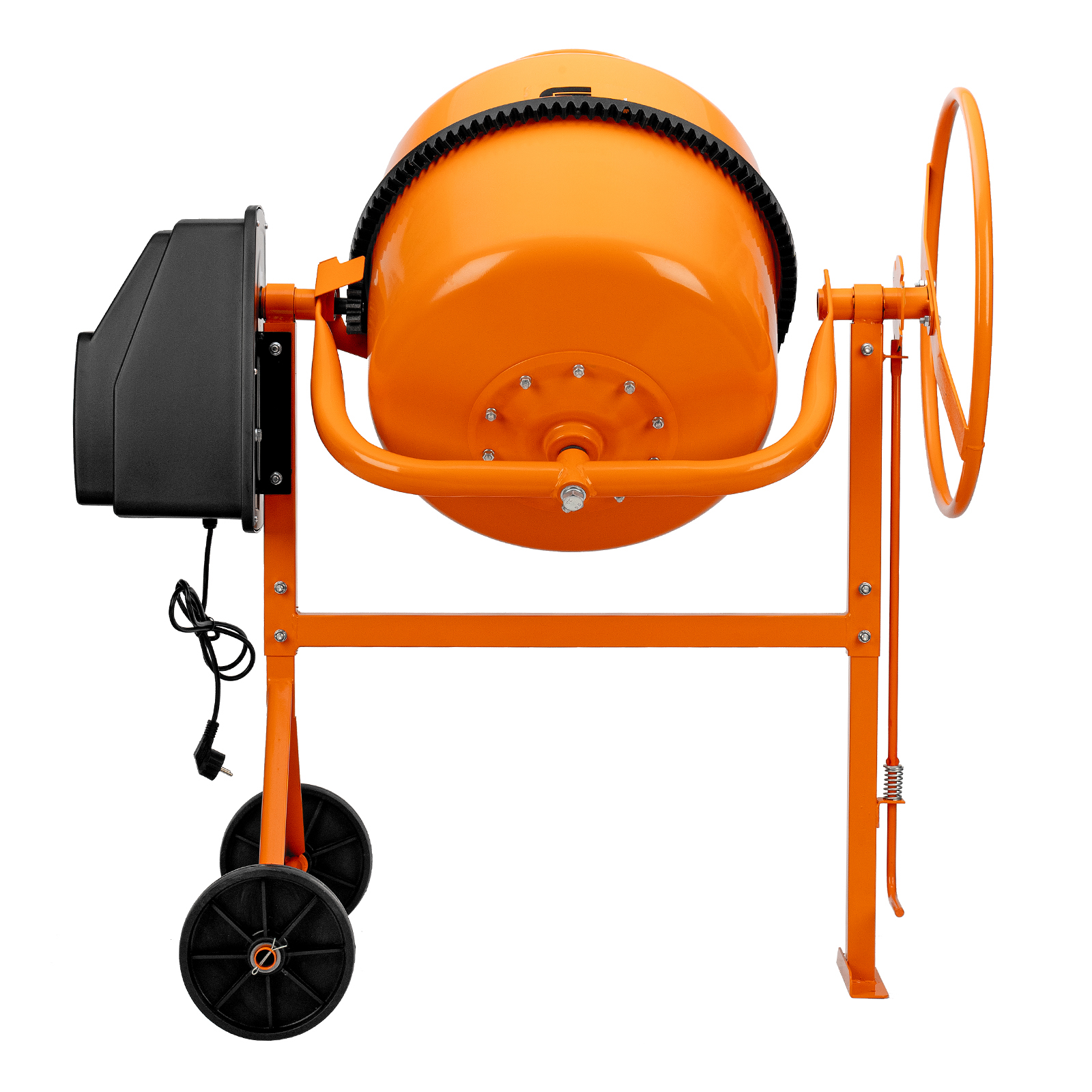 - Продуманная конструкция — увеличенный диаметр колес обеспечивает устойчивость бетоносмесителя во время работы, а также упрощает его перемещение по рабочей площадке.