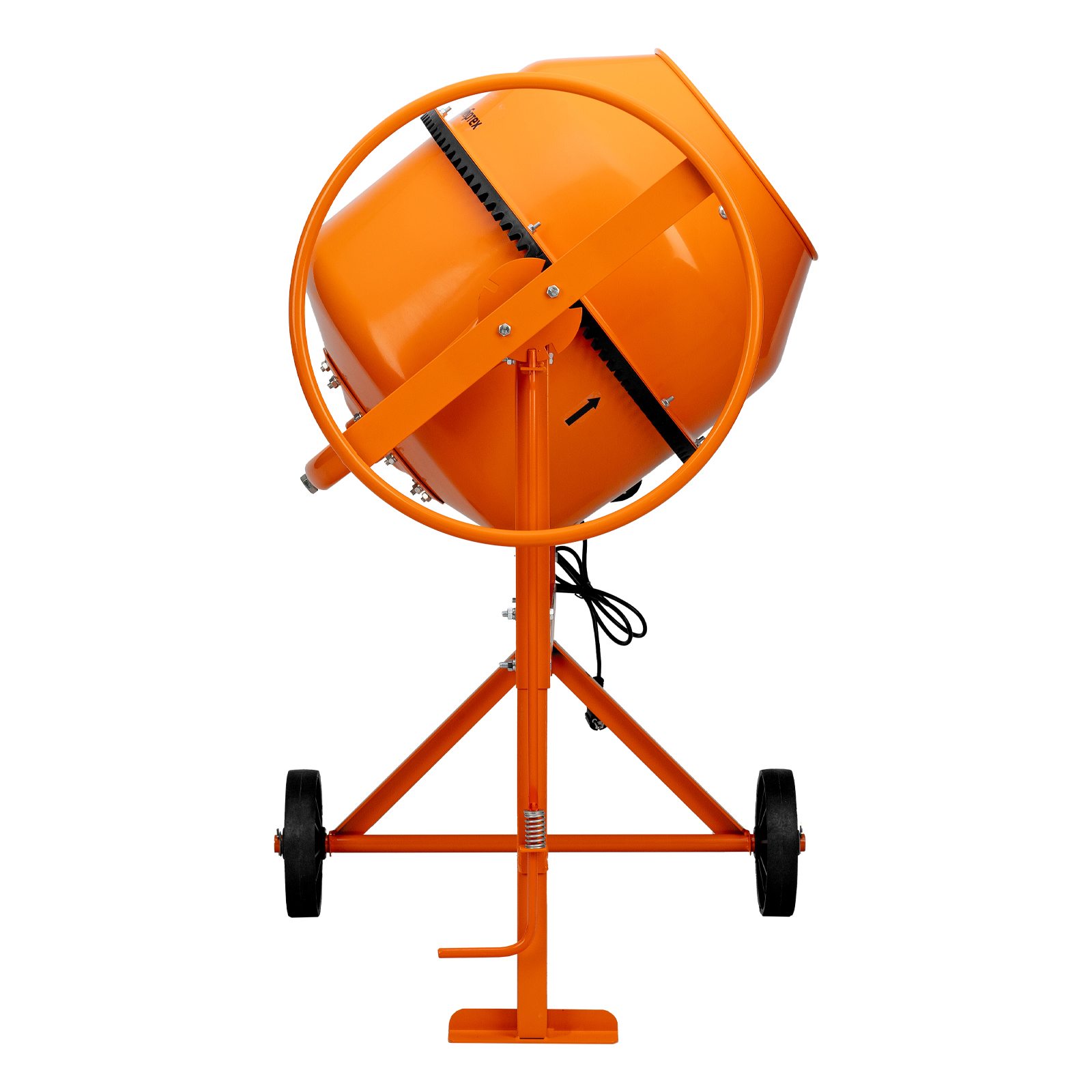 - Удобная загрузка и выгрузка смеси — барабан легко фиксируется в наклонном положении при помощи педали.