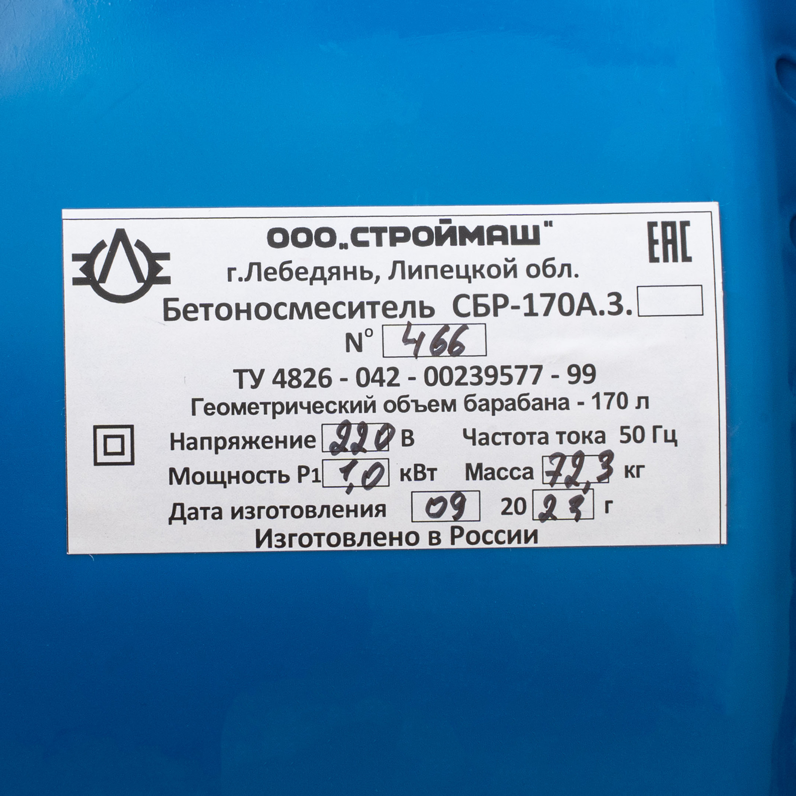 Бетоносмеситель СБР-170А.3, 170 л, 1 кВт, 220 В в Екатеринбурге