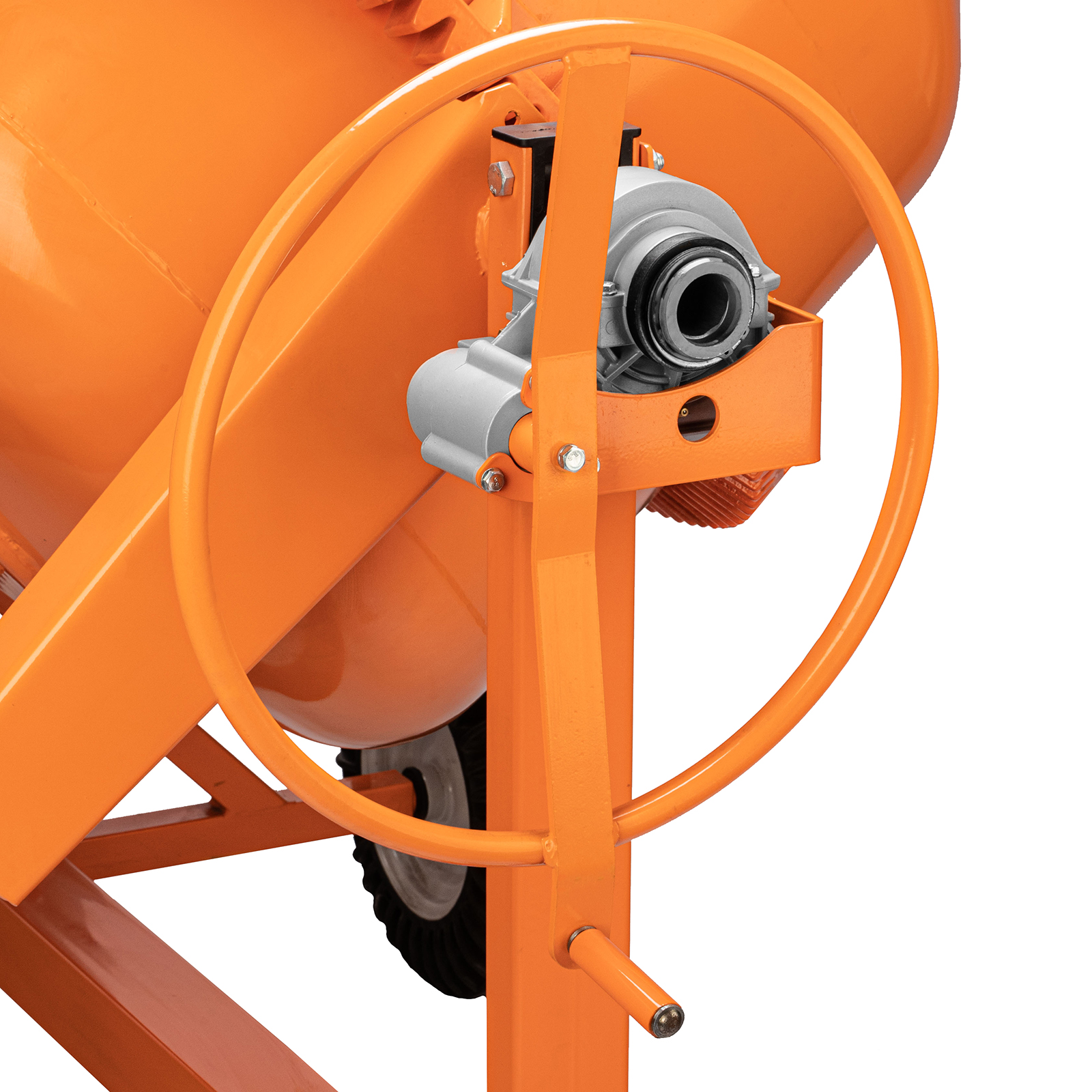 - Устойчивость — металлическая ножка с упором не дает бетоносмесителю опрокинуться во время работы.