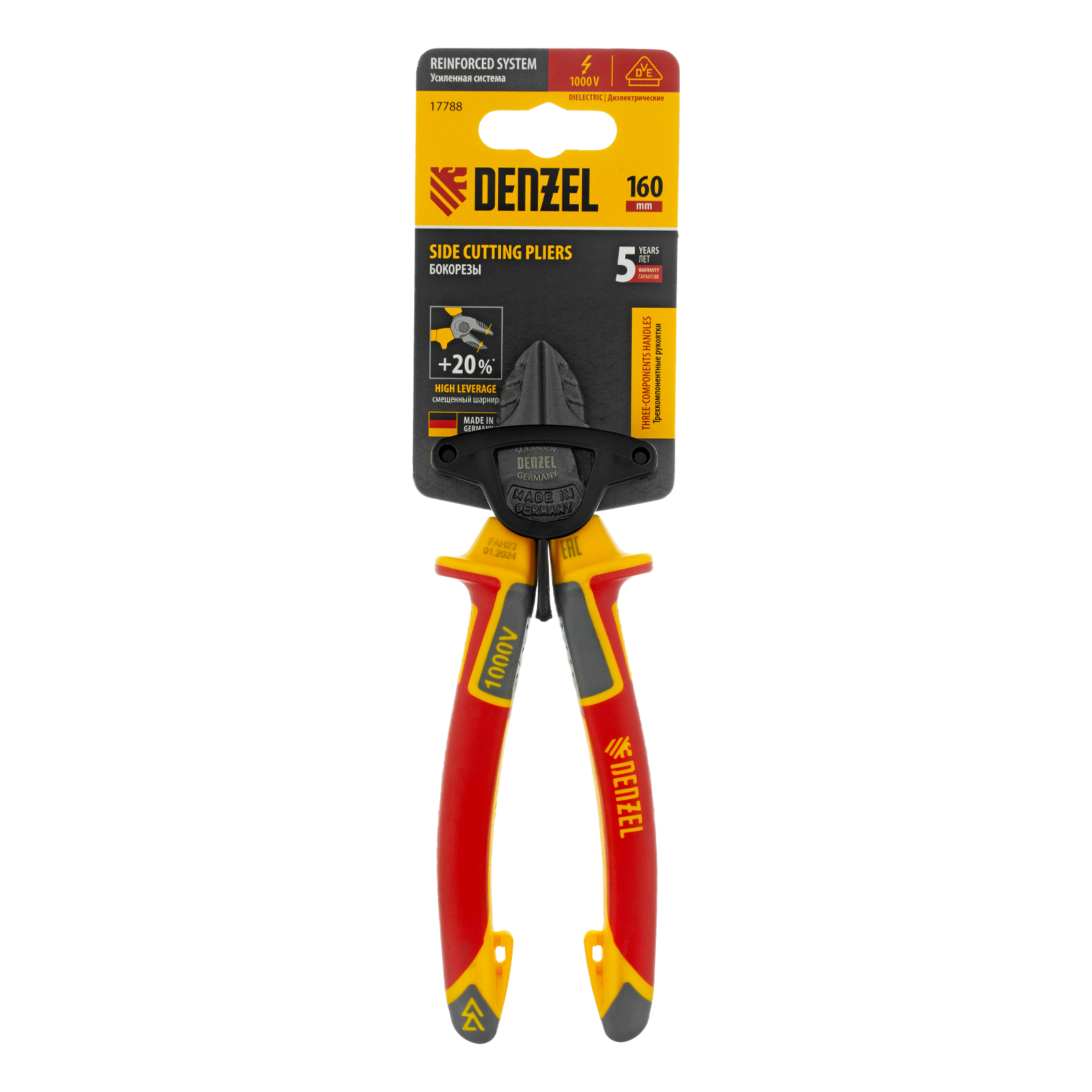 Бокорезы, диэлектрические рукоятки, до 1000 В, трехкомпонентные рукоятки, 160 мм Denzel в Екатеринбурге