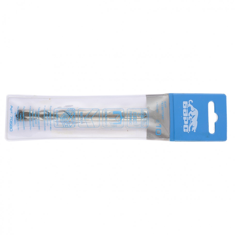 Бур по бетону Барс 70580 размером 10 х 110 мм, Luxembourg TIP, используется в качестве оснастки с перфораторами SDS Plus. Он подходит для бурения отверстий в бетоне, кирпиче, натуральном и искусственном камне. Бур может применяться на стройках, во время ремонтных, монтажных/демонтажных и иных работ как любителями, так и профессионалами.