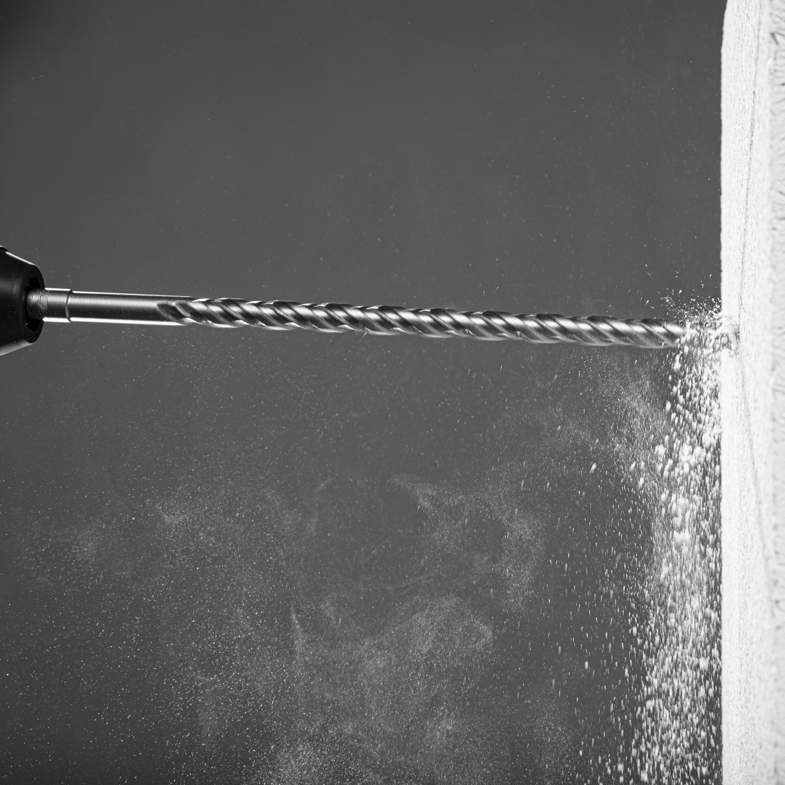 - Увеличенная площадь сечения корпуса способствует снижению вибраций при сверлении и предотвращает поломку бура.