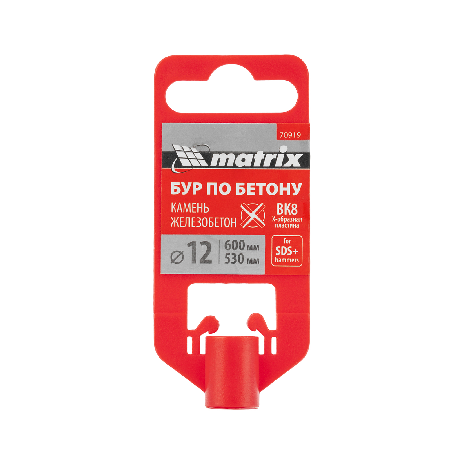 Бур по бетону Matrix 70919 длиной 600 мм, с хвостовиком SDS-plus и крестовой пластиной, предназначен для получения отверстий диаметром 12 мм в бетоне, камне и кирпиче. Крестовая пластина обеспечивает эффективную работу с твердыми материалами, в том числе армированным бетоном. Бур устанавливается в патрон перфоратора и используется во время проведения строительных работ.