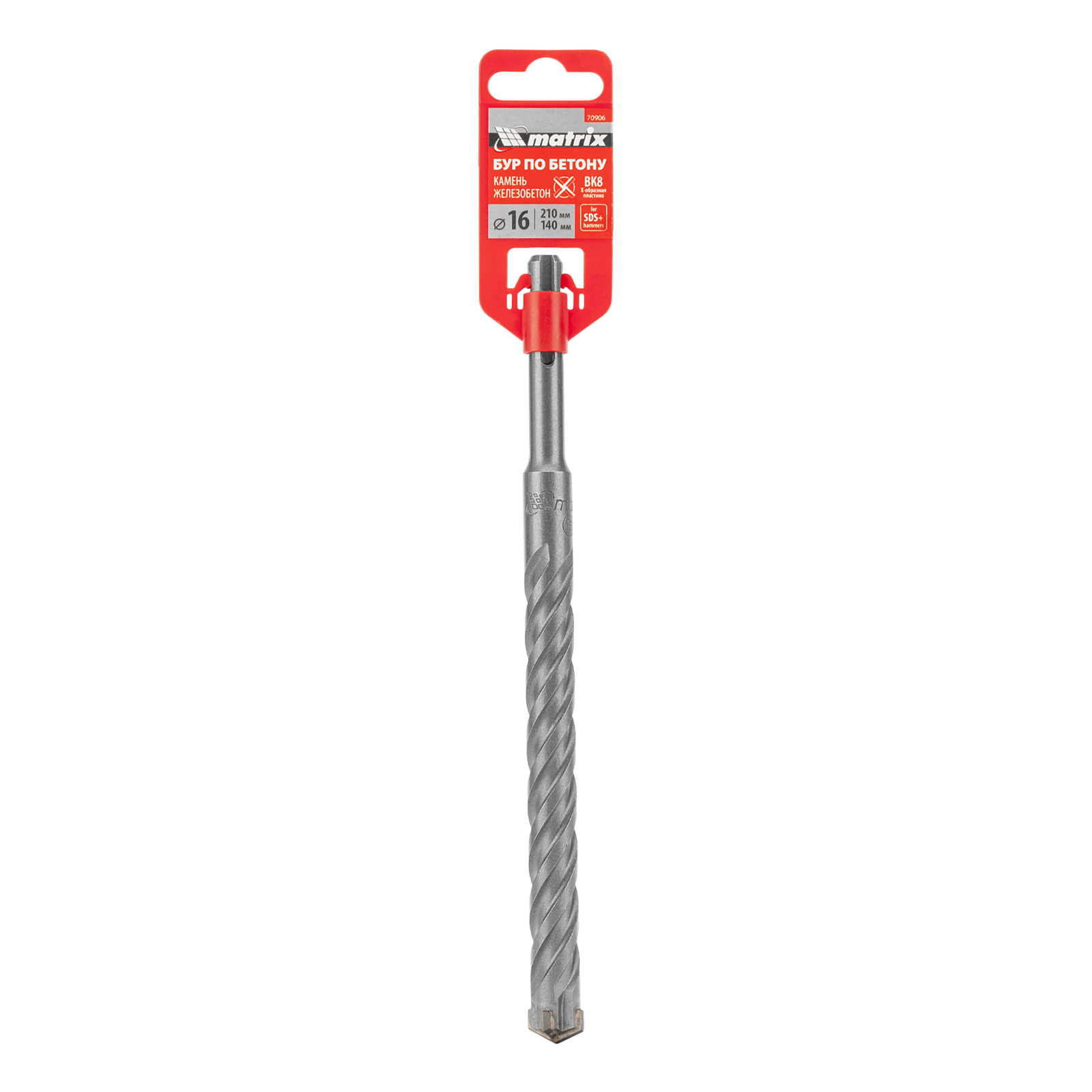 Бур по бетону Matrix 70906 длиной 210 мм, с хвостовиком SDS-plus и крестовой пластиной, предназначен для получения отверстий диаметром 16 мм в бетоне, камне и кирпиче. Крестовая пластина обеспечивает эффективную работу с твердыми материалами, в том числе армированным бетоном. Бур устанавливается в патрон перфоратора и используется во время проведения строительных работ.