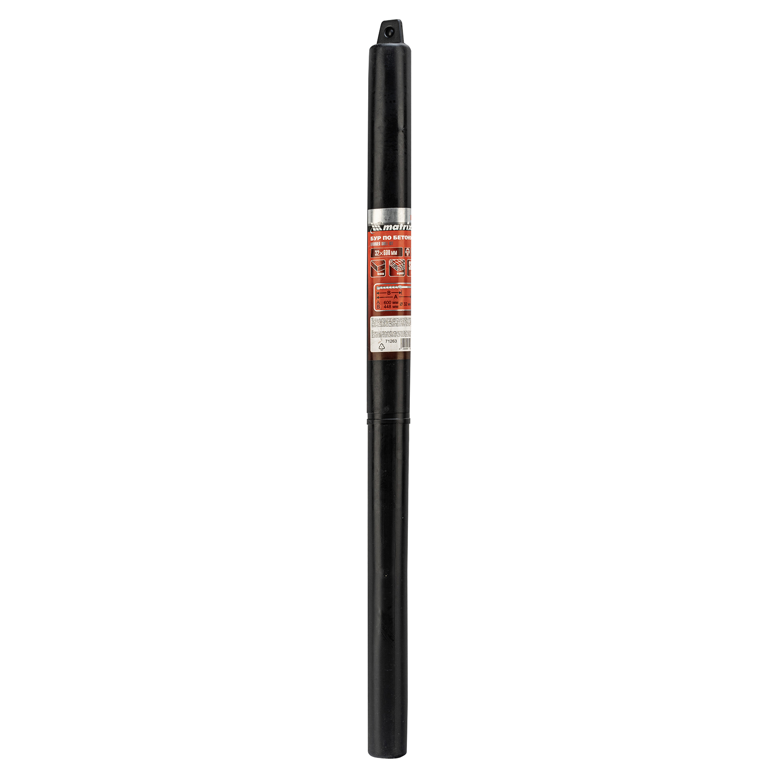 Бур по бетону Matrix 71263 размером 32 х 600 мм используется в качестве оснастки на тяжелых перфораторах с хвостовиком SDS MAX. Подходит для сверления глубоких отверстий в кирпиче и особо прочных материалах: армированном бетоне, природном и искусственном камне.