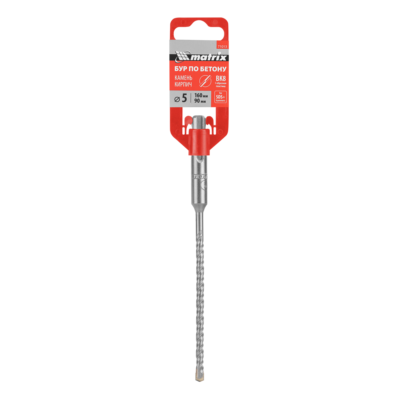 Бур по бетону Matrix 71013 длиной 160 мм, с хвостовиком SDS-plus, предназначен для установки на перфоратор и получения отверстий диаметром 5 мм в бетоне, камне и кирпиче. Позволяет эффективно решать поставленные задачи благодаря режущей пластине из высокотвердого сплава карбида вольфрама ВК8 твердостью 80-90 HRC.