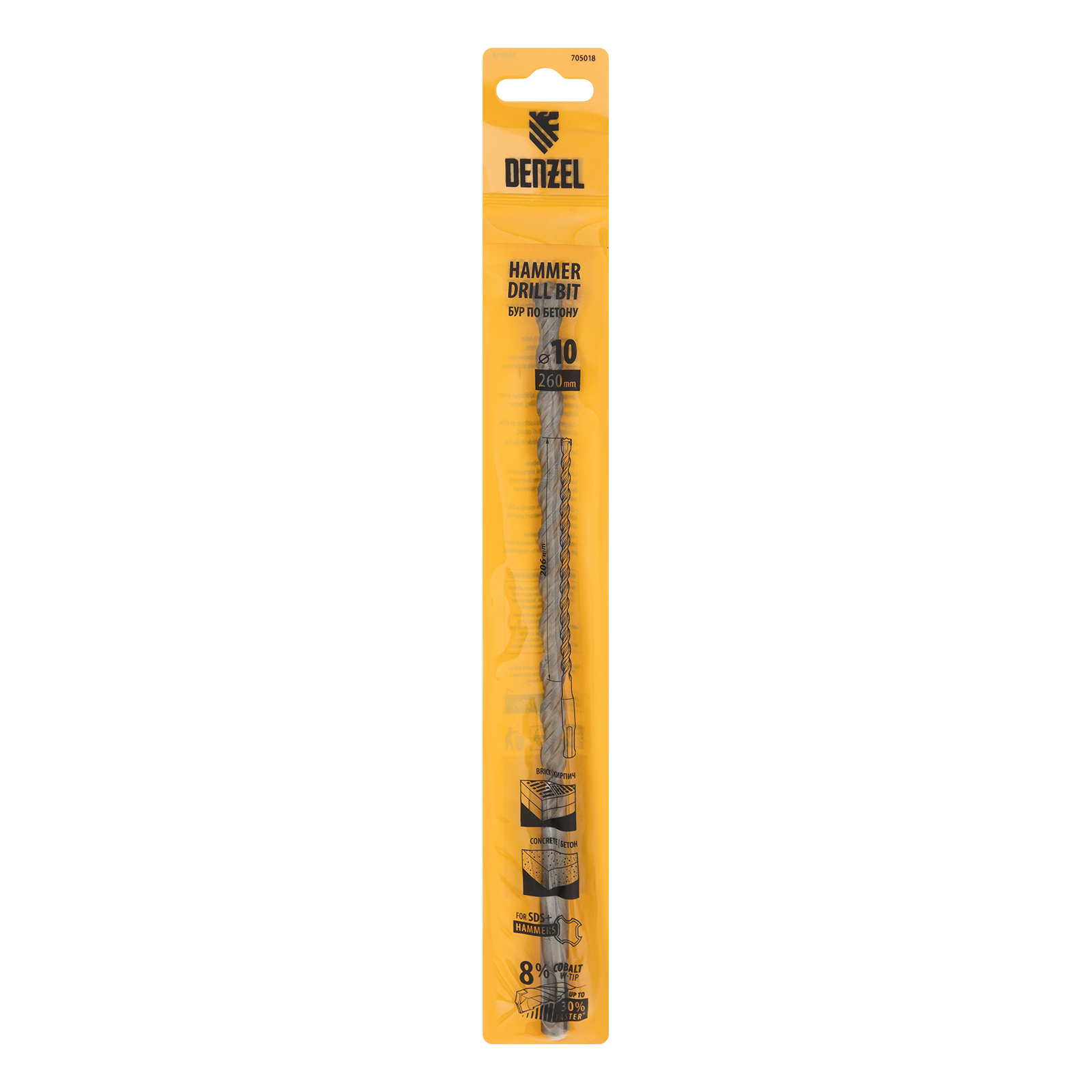 Бур по бетону Denzel Cobalt W-tip 705018 размером 10 х 260 мм, с хвостовиком SDS-plus и двойной спиралью, предназначен для сверления бетона, кирпича и камня. Используется в качестве оснастки для перфораторов с патроном SDS-plus. Бур оптимален для проведения строительных, ремонтных, монтажных работ.