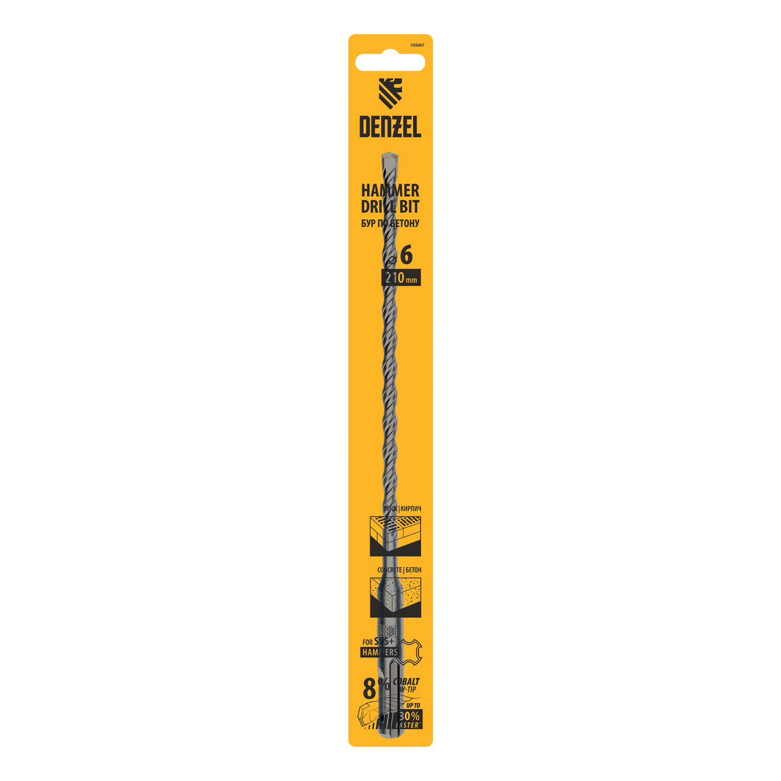 Бур по бетону Denzel Cobalt W-tip 705007 размером 6 х 210 мм, с хвостовиком SDS-plus и двойной спиралью, предназначен для сверления бетона, кирпича и камня. Используется в качестве оснастки для перфораторов с патроном SDS-plus. Бур оптимален для проведения строительных, ремонтных, монтажных работ.