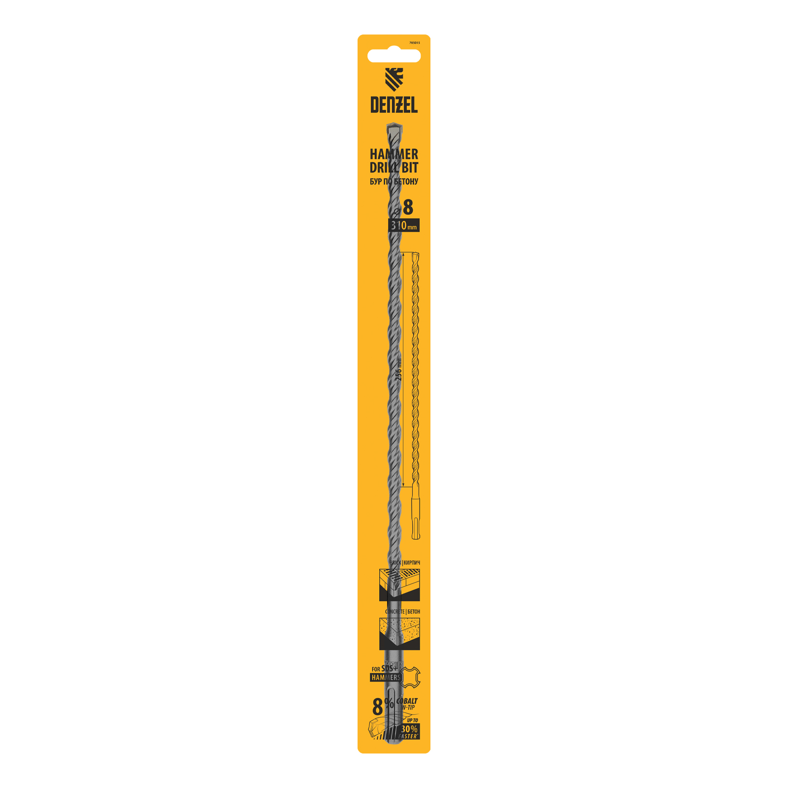 Бур по бетону Denzel Cobalt W-tip 705015 размером 8 х 310 мм, с хвостовиком SDS-plus и двойной спиралью, предназначен для сверления бетона, кирпича и камня. Используется в качестве оснастки для перфораторов с патроном SDS-plus. Бур оптимален для проведения строительных, ремонтных, монтажных работ.