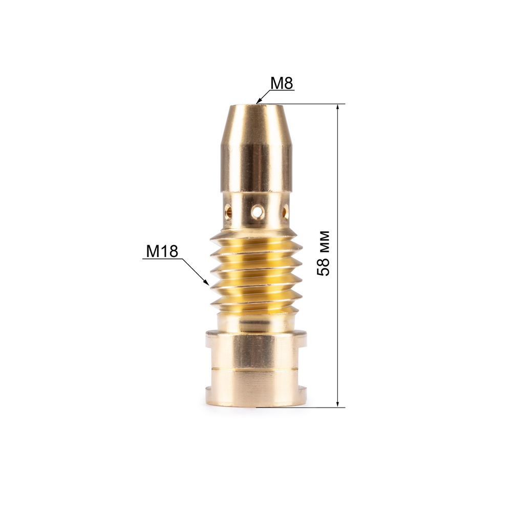 Газовый РАСХОДНЫЙ диффузор для горелки MIG-45 устанавливается на гусак полуавтоматической горелки и служит для равномерного распределения поступающего газа в сопло. Диффузор изготовлен из латуни.