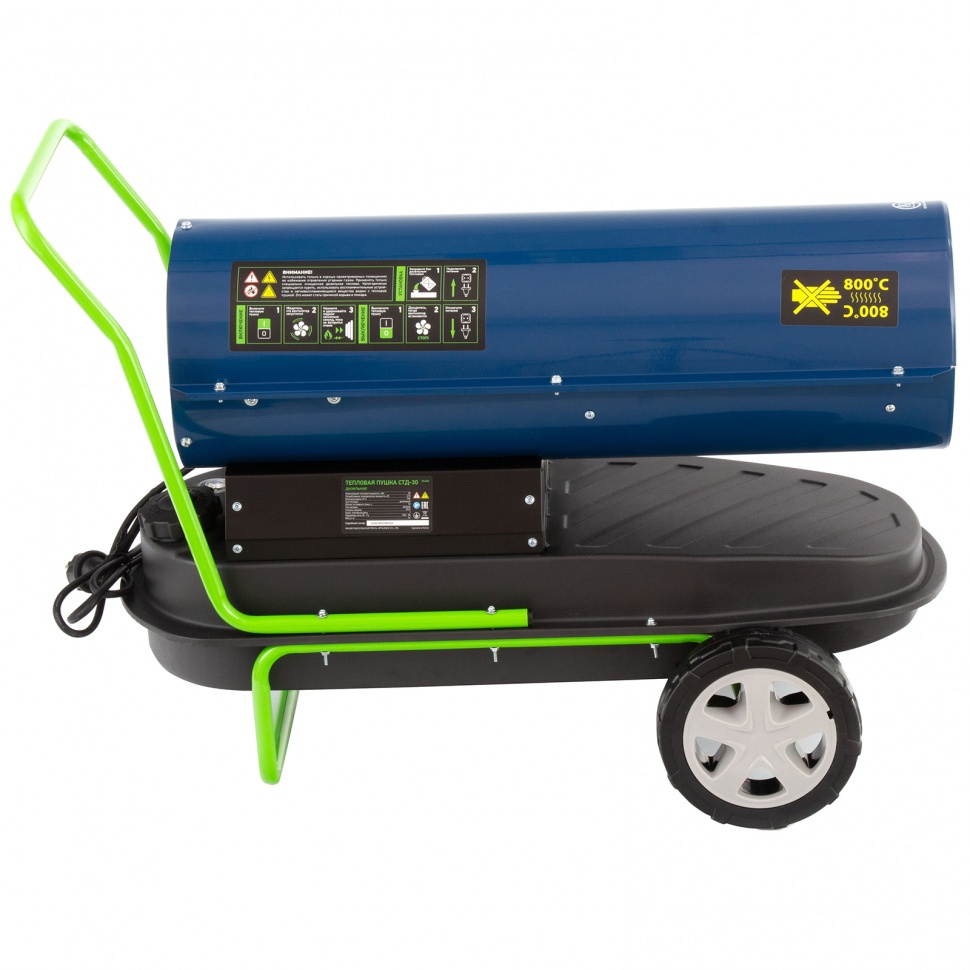 Дизельная тепловая пушка Сибртех СТД-30 96468 мощностью 30 кВт и производительностью 750 куб. м/ч используется для прямого нагрева воздуха в цехах, хранилищах, ангарах, теплицах и других нежилых помещениях. Также ее используют на строительных площадках для просушивания стен, разморозки траншей, подогрева бетона. Пушка позволяет быстро и эффективно обогреть помещение с объемом воздуха до 1000 куб. м.