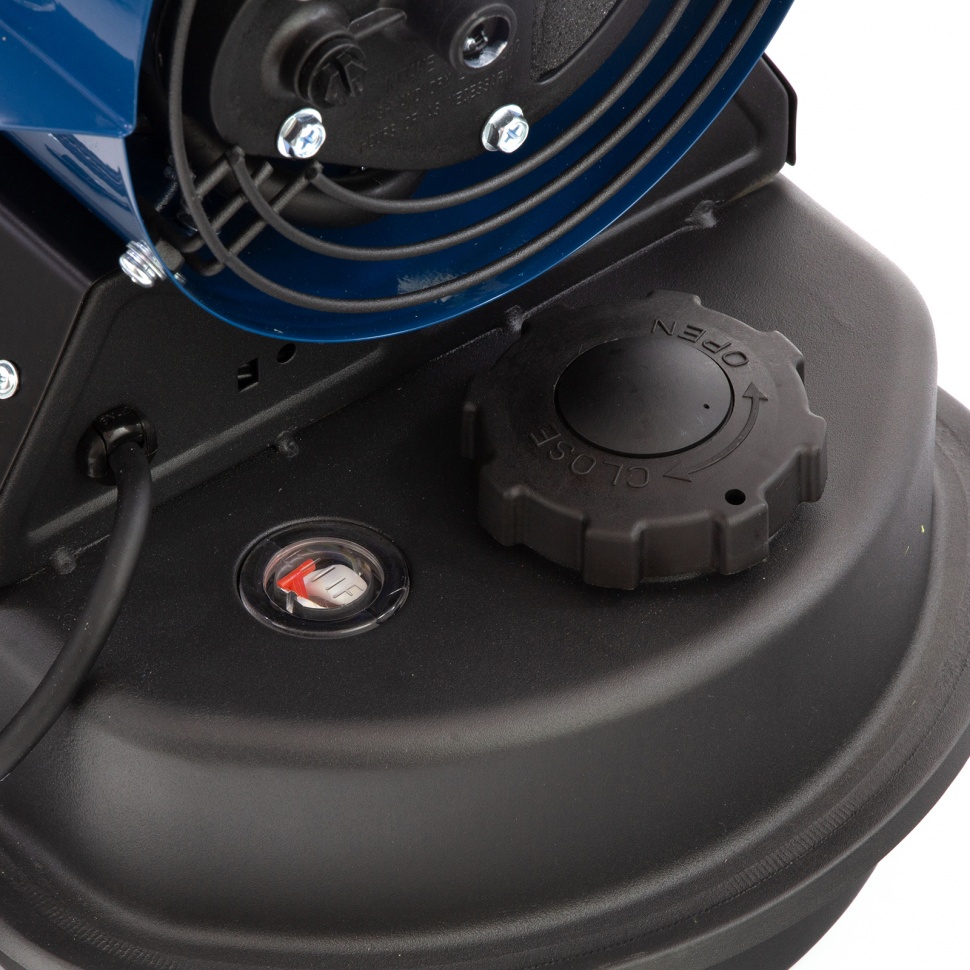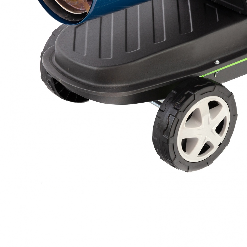 - Удобная транспортировка — благодаря подставке с ручкой и двум большим колесам пушку легко перемещать по рабочей площадке.