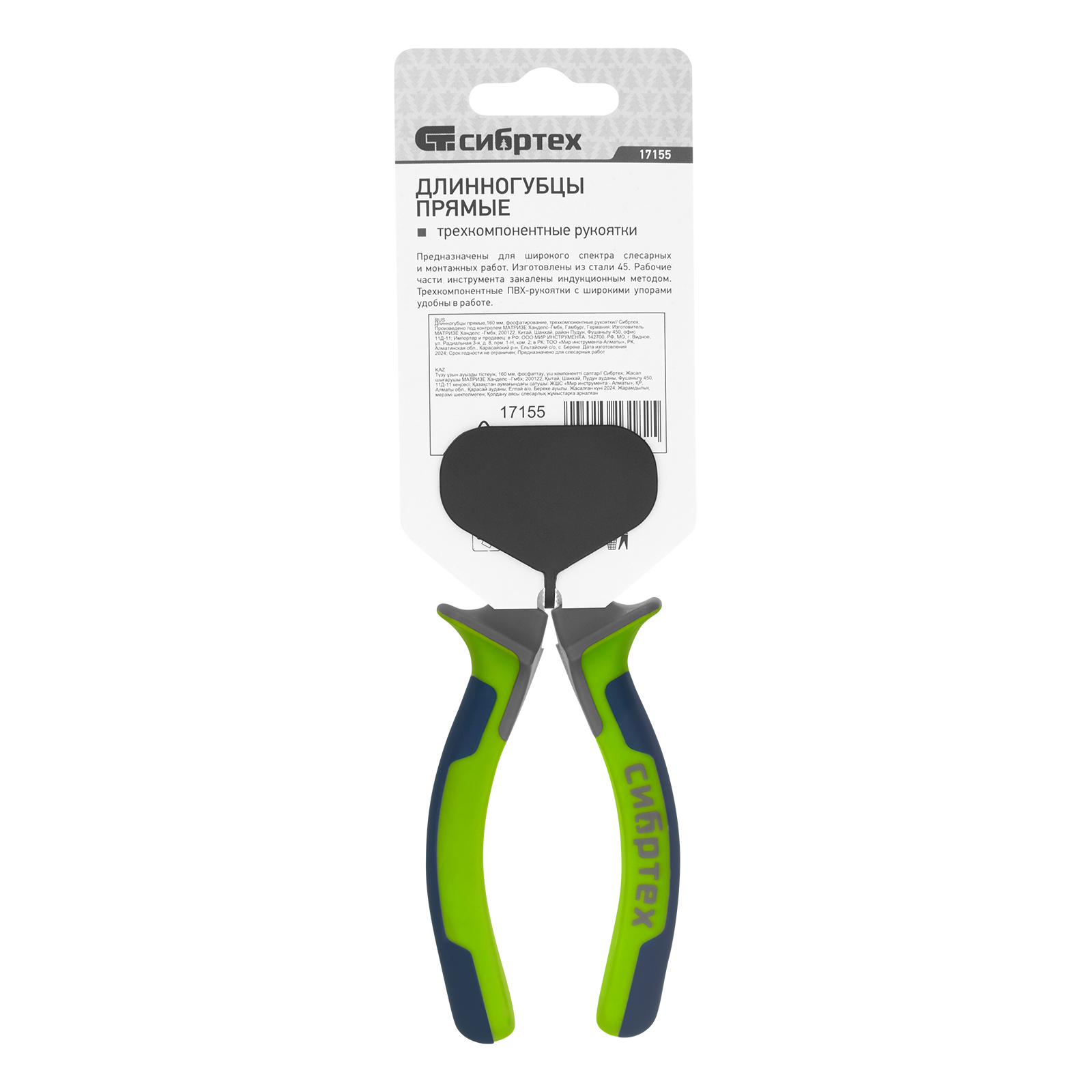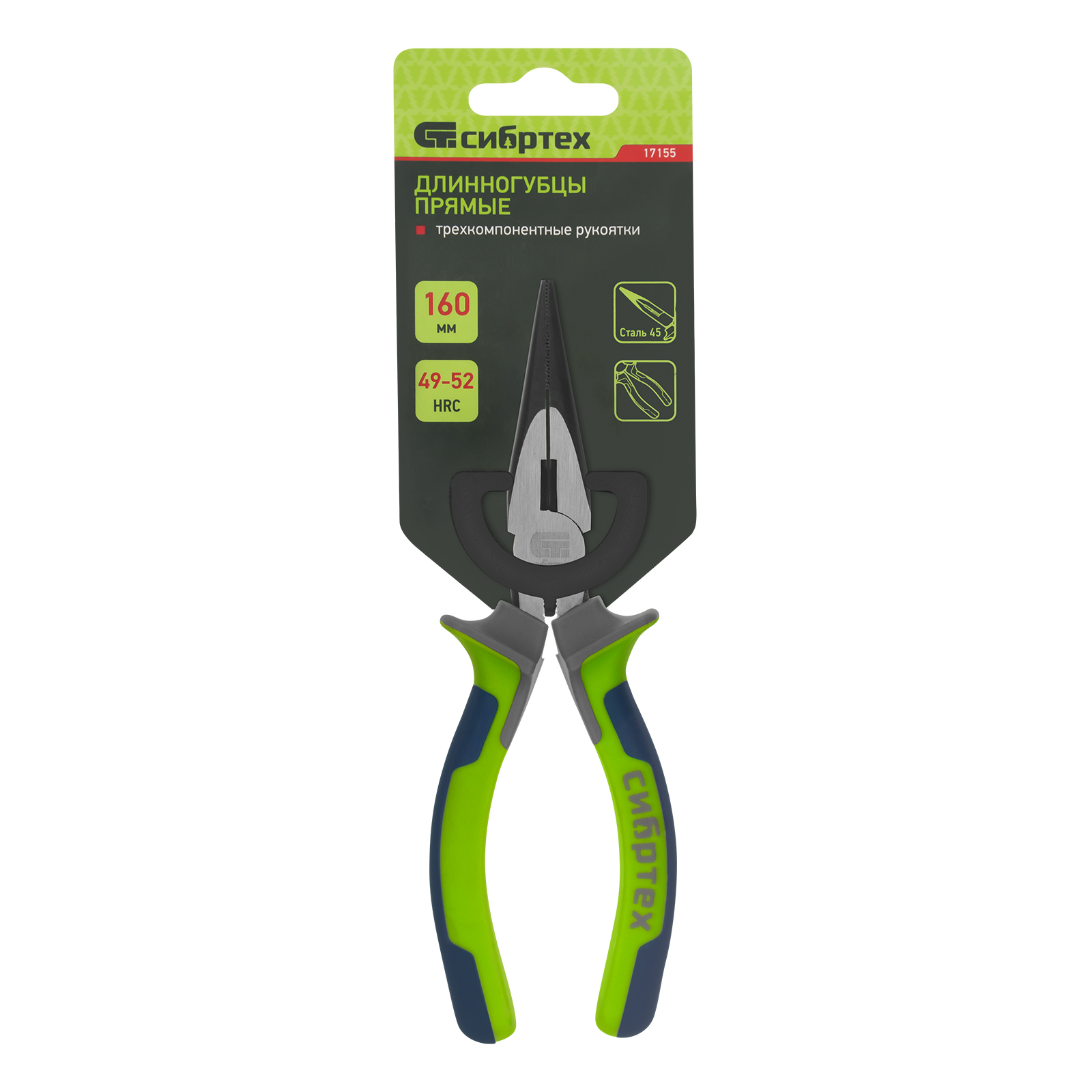 Длинногубцы прямые 160 мм, фосфатирование, трехкомпонентные рукоятки Сибртех в Екатеринбурге