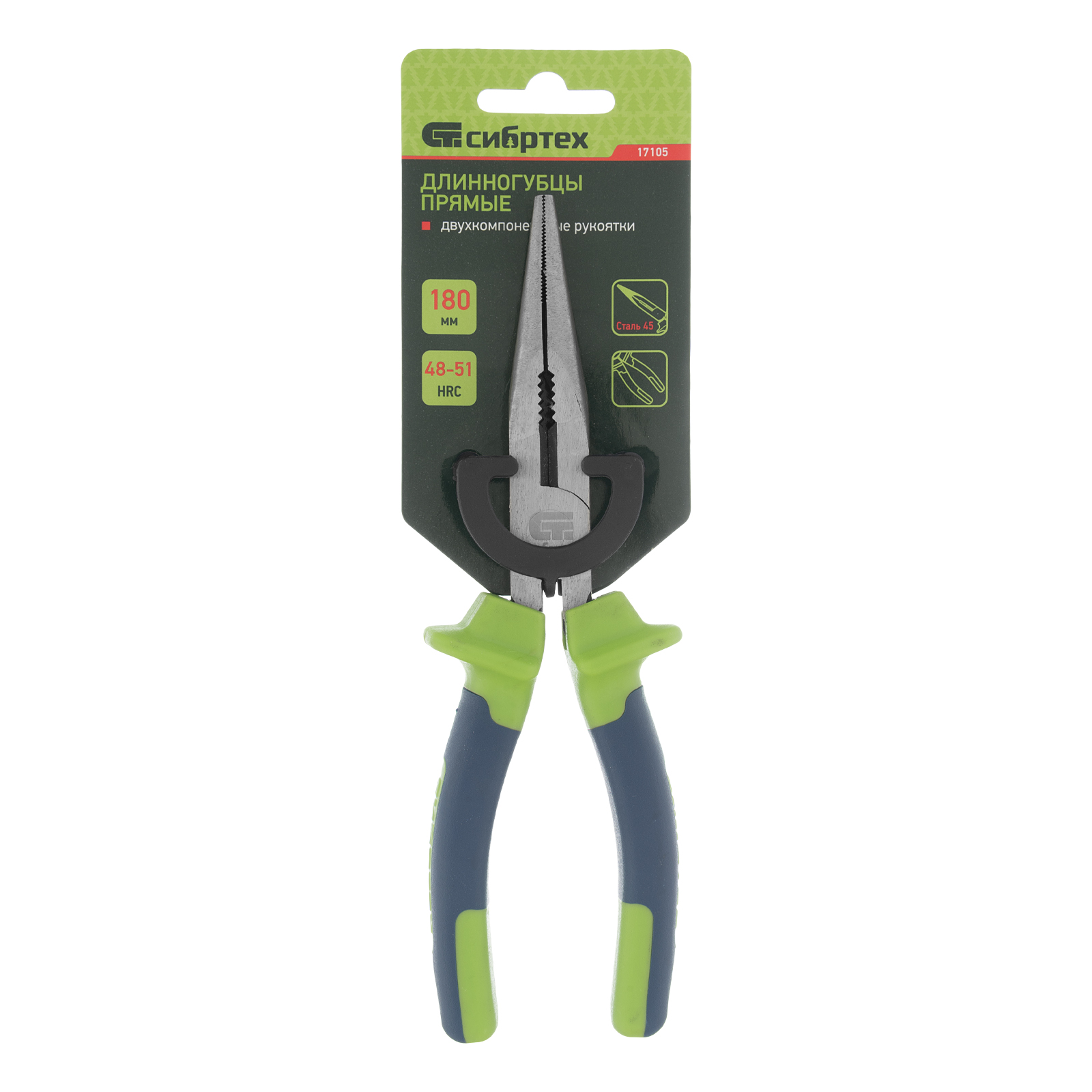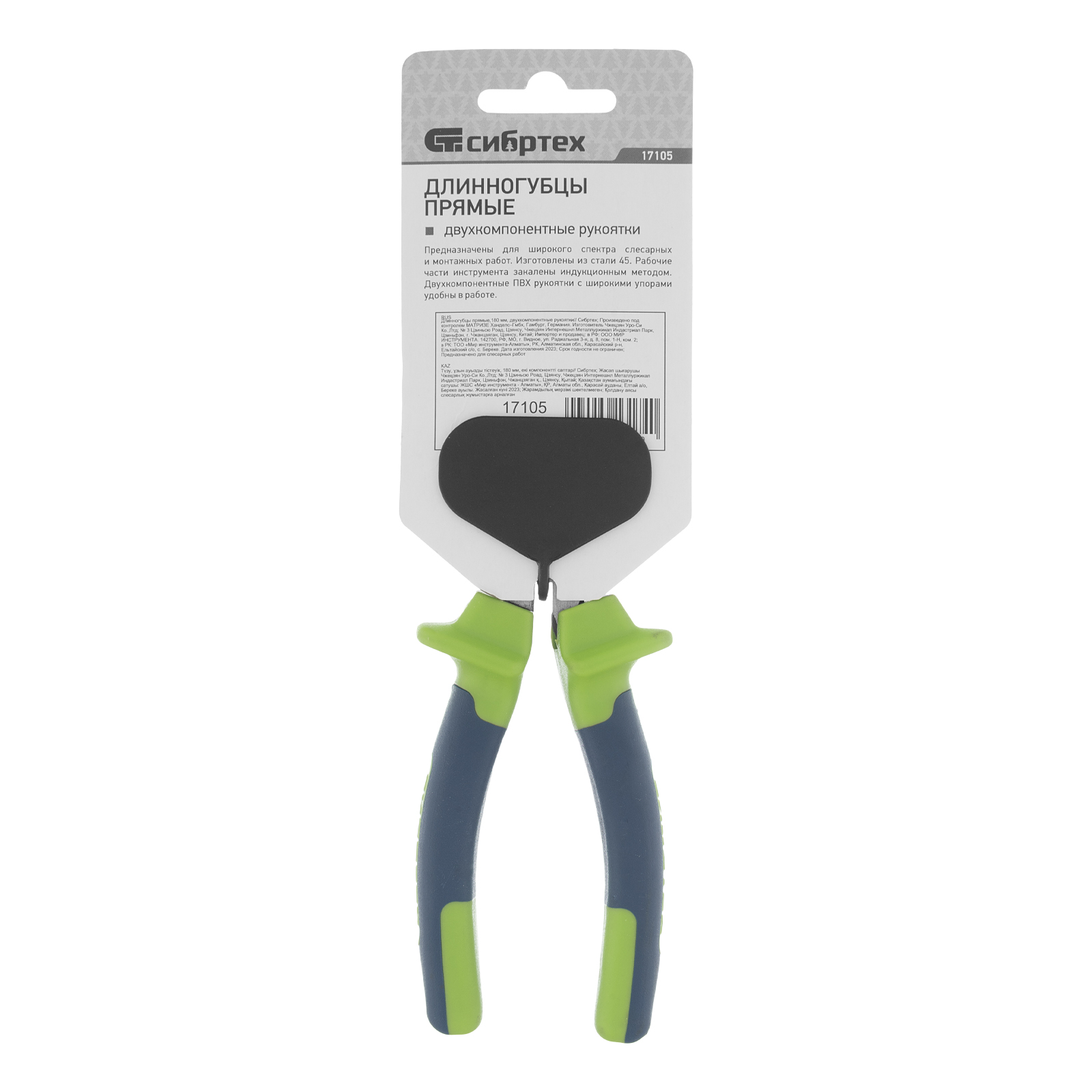 Длинногубцы прямые, 180 мм, двухкомпонентные рукоятки Сибртех в Екатеринбурге