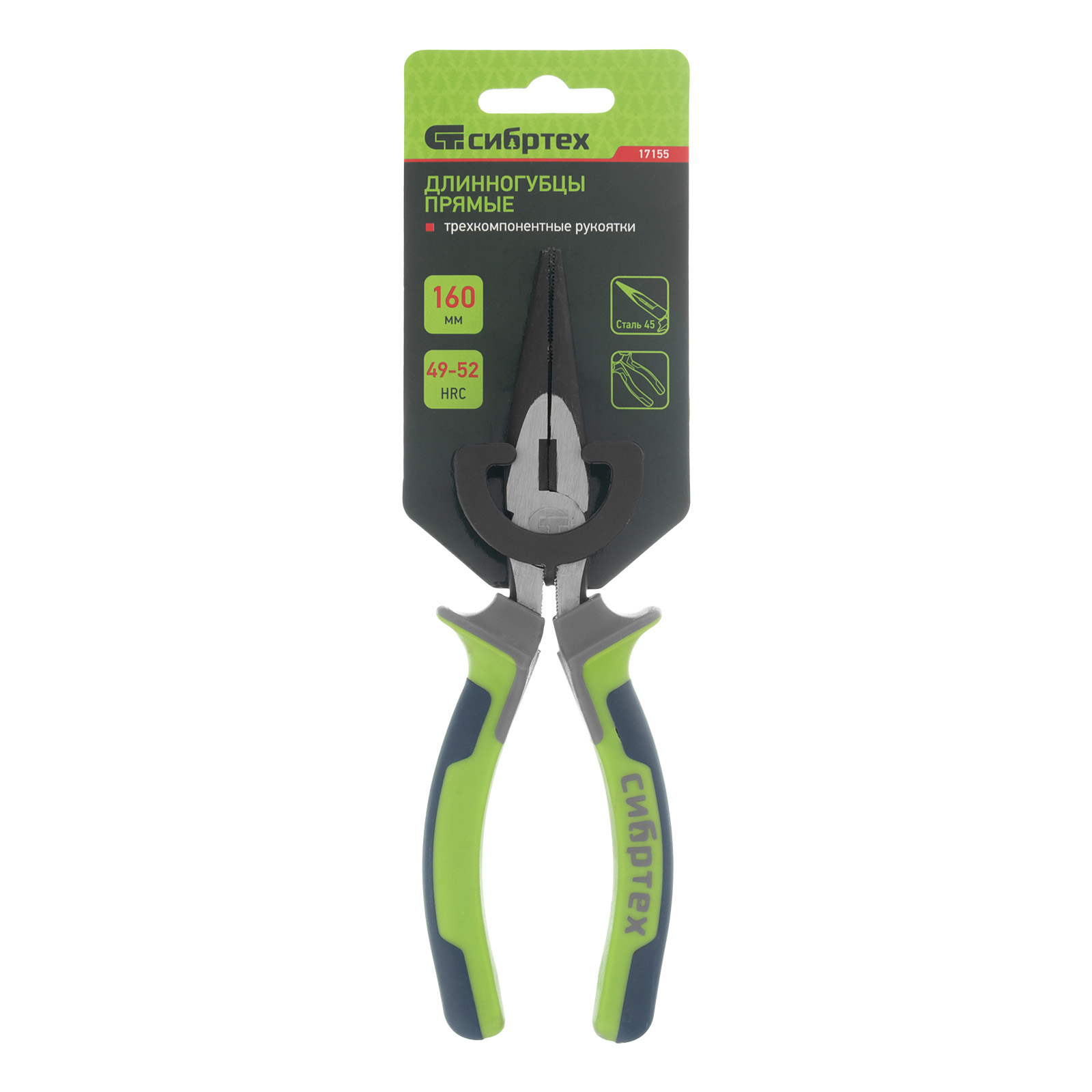 Длинногубцы прямые, 200 мм, трехкомпонентные рукоятки Сибртех в Екатеринбурге