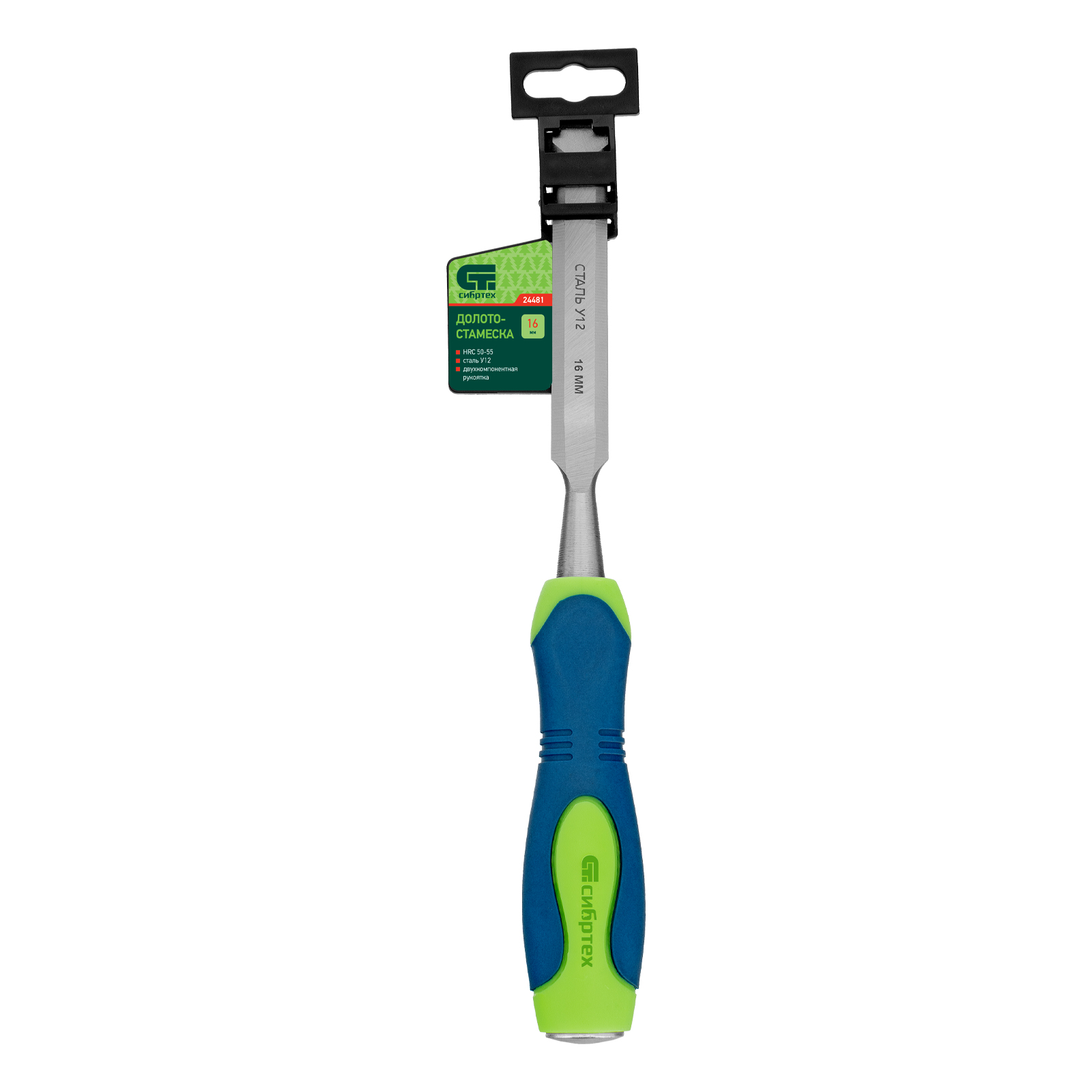 Долото-стамеска Сибртех 24481 с двухкомпонентной рукояткой — ручной инструмент с шириной режущей части 16 мм для столярных и плотницких работ с массивом натурального дерева. Под ударом киянки или небольшого молотка долото-стамеска легко врезается в древесину любых пород, что позволяет получать аккуратные прямоугольные пазы, снимать фаски, зачищать гнезда и т.д.