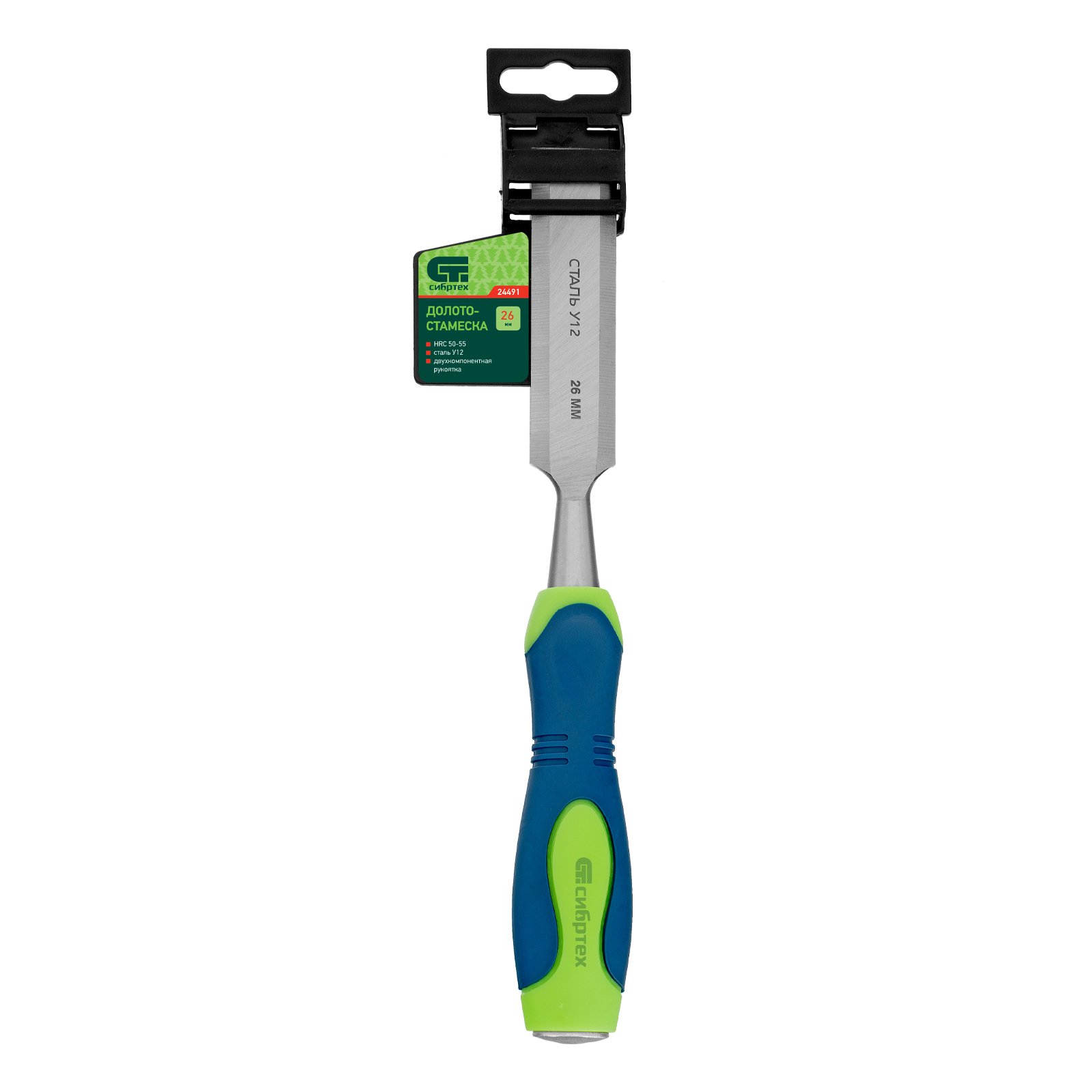 Долото-стамеска Сибртех 24491 с двухкомпонентной рукояткой — ручной инструмент с шириной режущей части 26 мм для столярных и плотницких работ с массивом натурального дерева. Под ударом киянки или небольшого молотка долото-стамеска легко врезается в древесину любых пород, что позволяет получать аккуратные прямоугольные пазы, снимать фаски, зачищать гнезда и т.д.