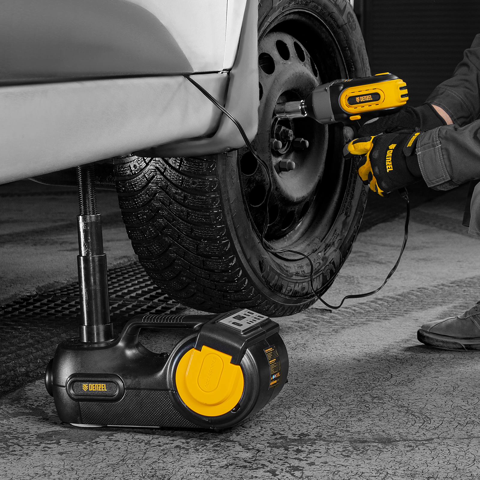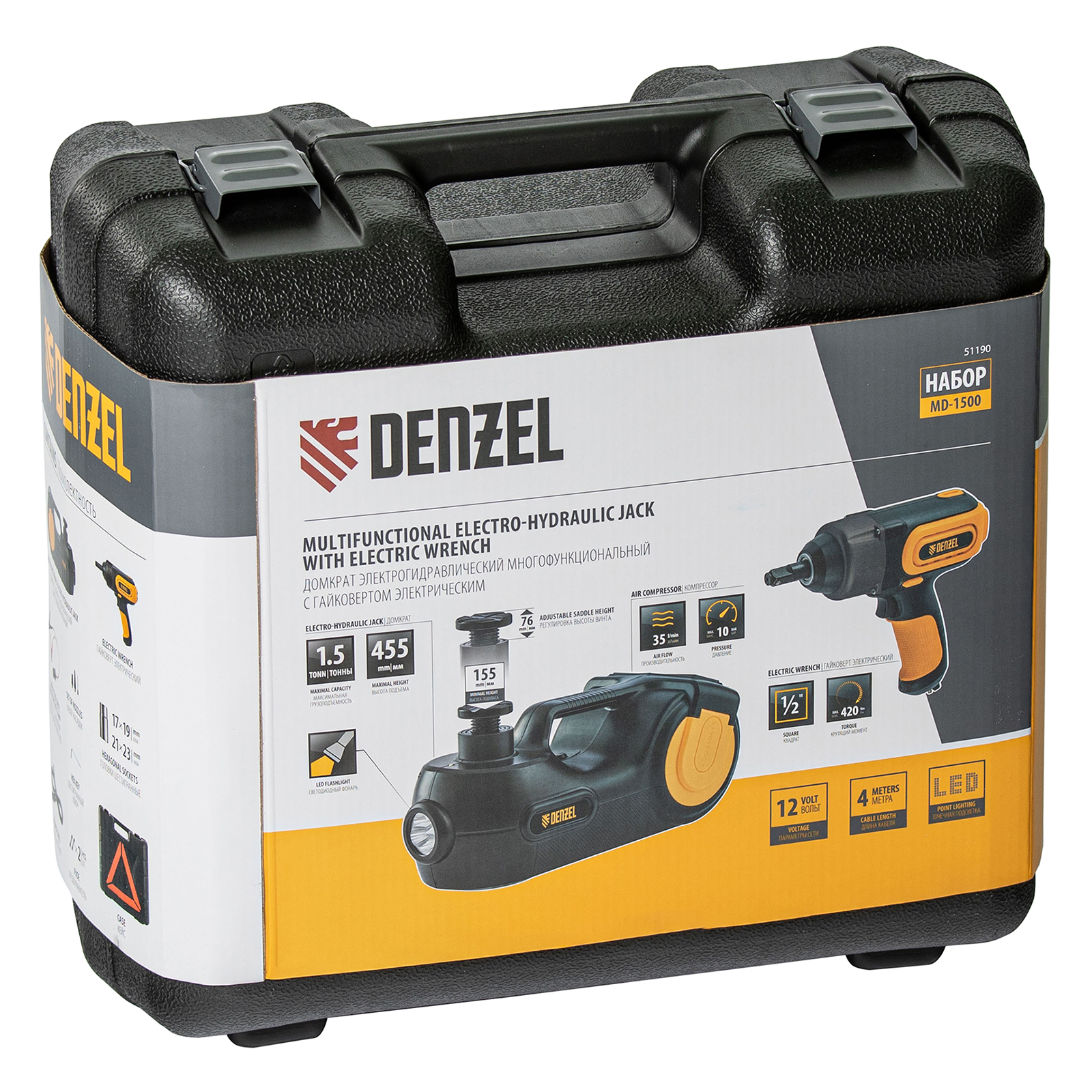 Домкрат электрогидравлический «3 в 1» (1,5 т), 12В, с гайковертом электрическим, в наборе Denzel в Екатеринбурге