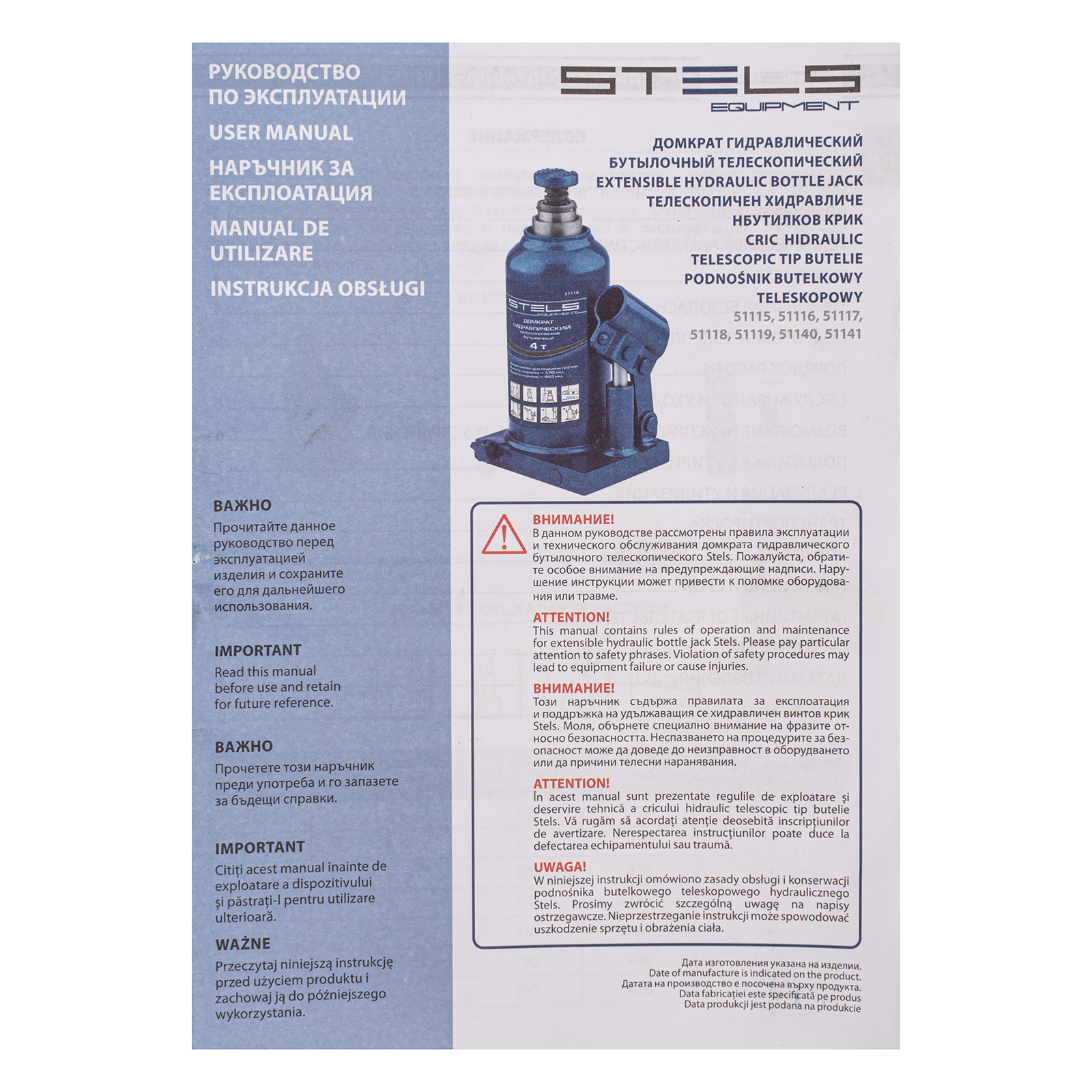 Гидравлический бутылочный телескопический домкрат Stels 51118 используется для поднятия грузов весом до 8 т с на высоту 170-430 мм. Не требует больших усилий и оптимален для автомобилей с большим клиренсом. Домкрат можно использовать в гараже для самостоятельного ремонта машины или в автосервисе для решения профессиональных задач.