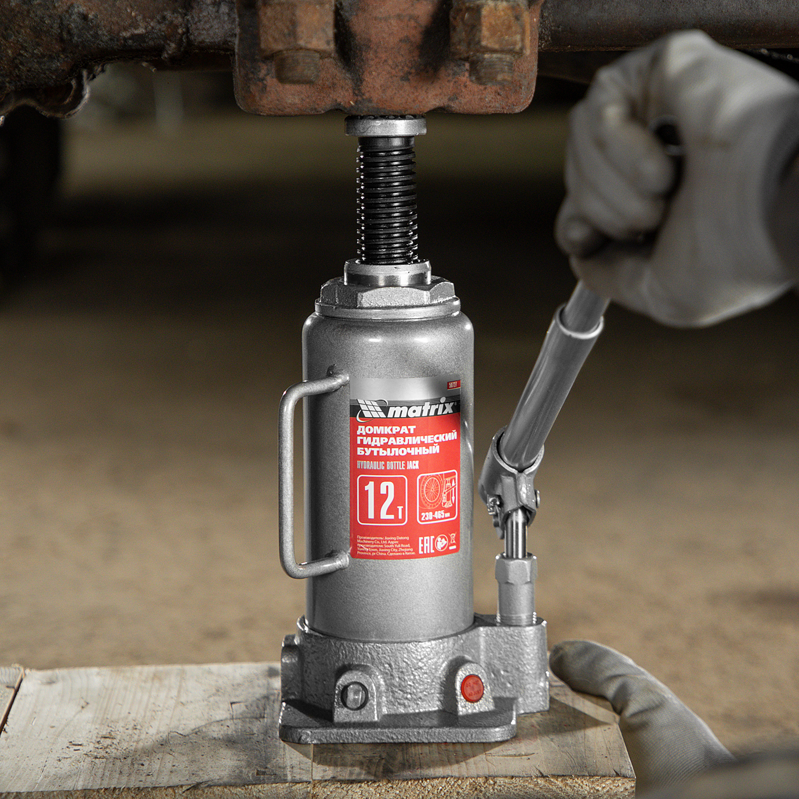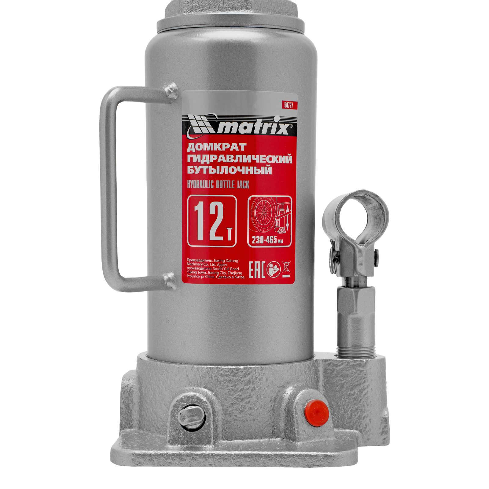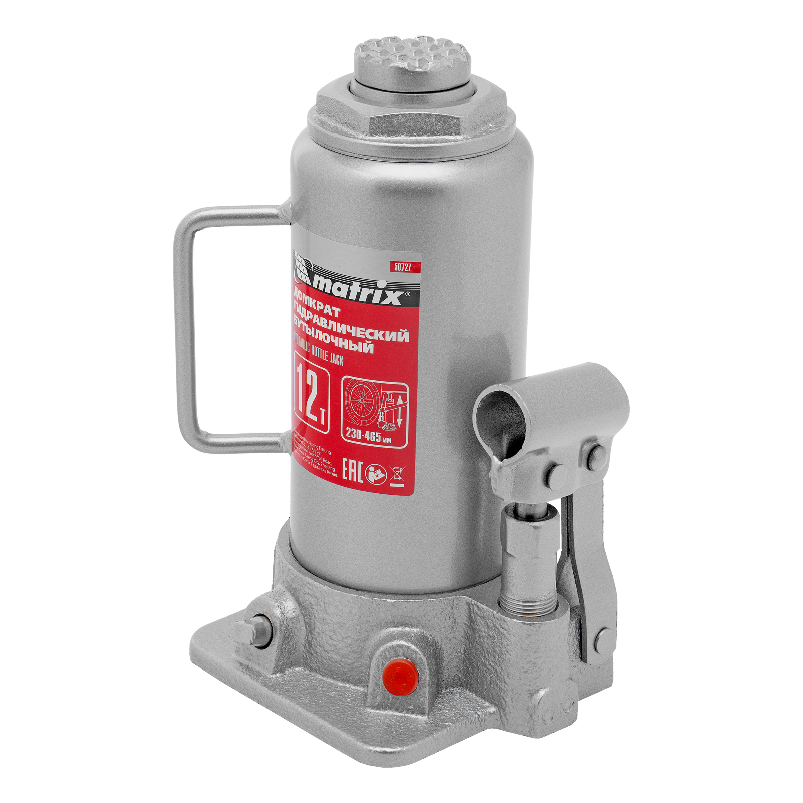 Домкрат гидравлический бутылочный, 12 т, высота подъема 230-465 мм Matrix в Екатеринбурге