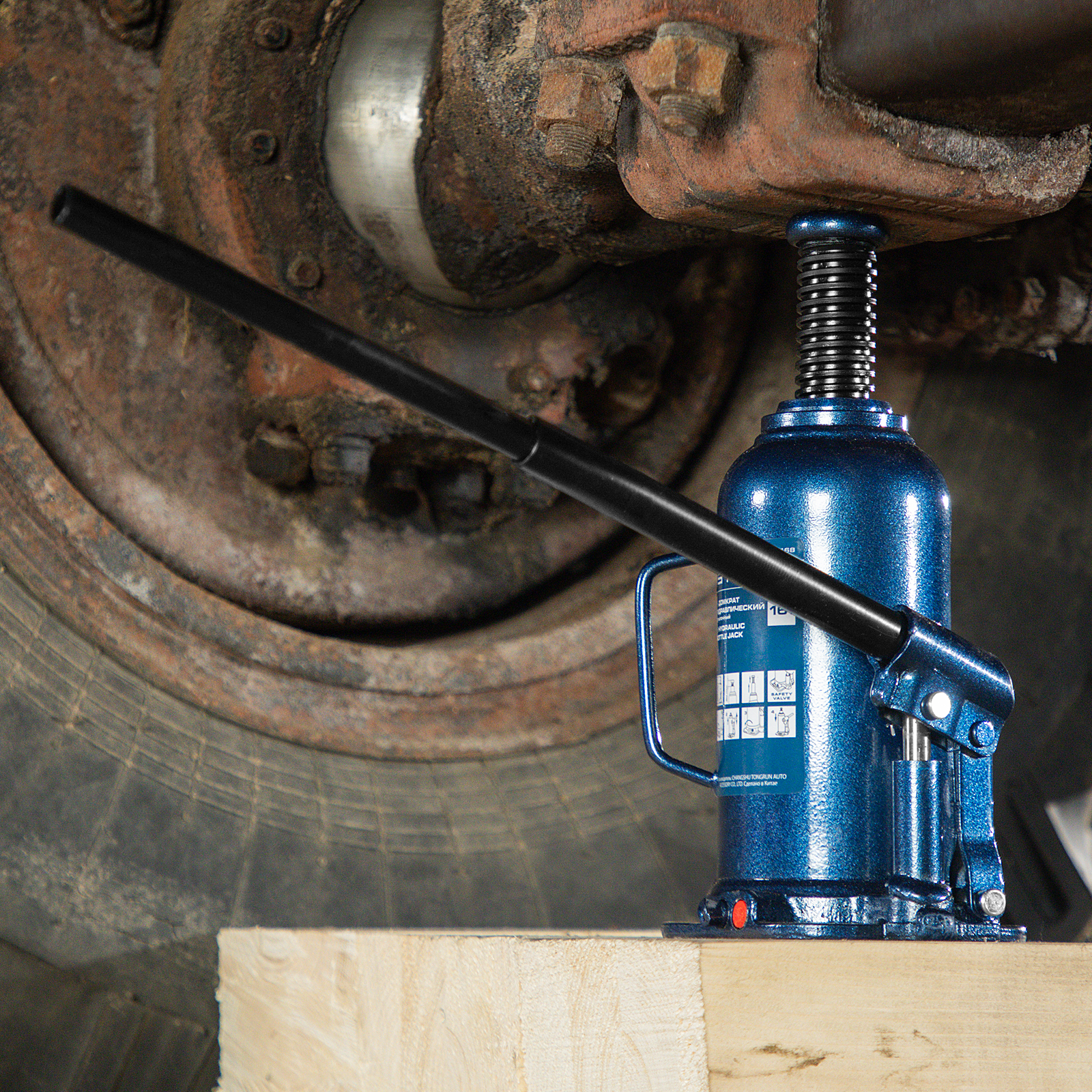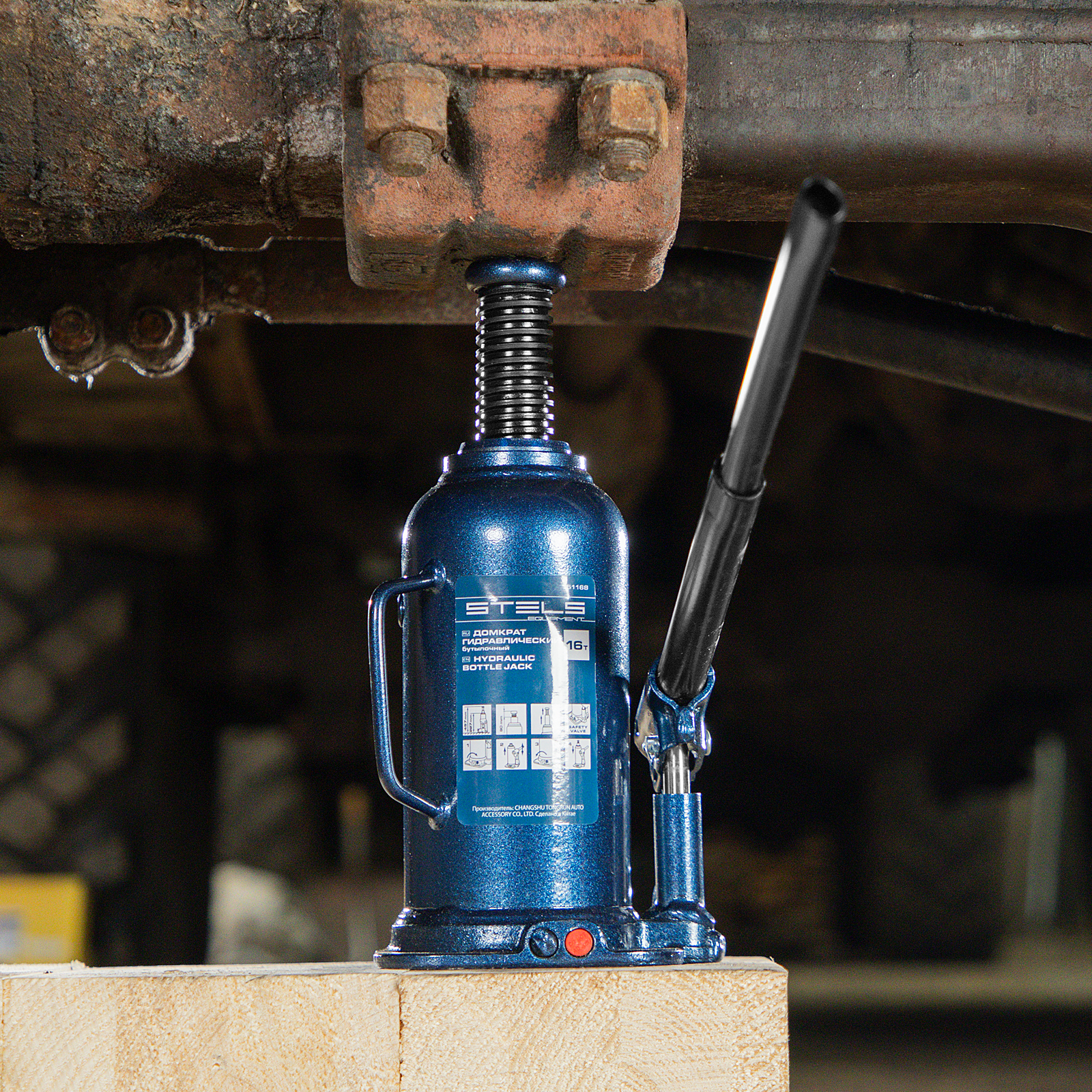 - Безопасная эксплуатация — благодаря предохранительному клапану домкрат не поднимает грузы тяжелее 16 т.