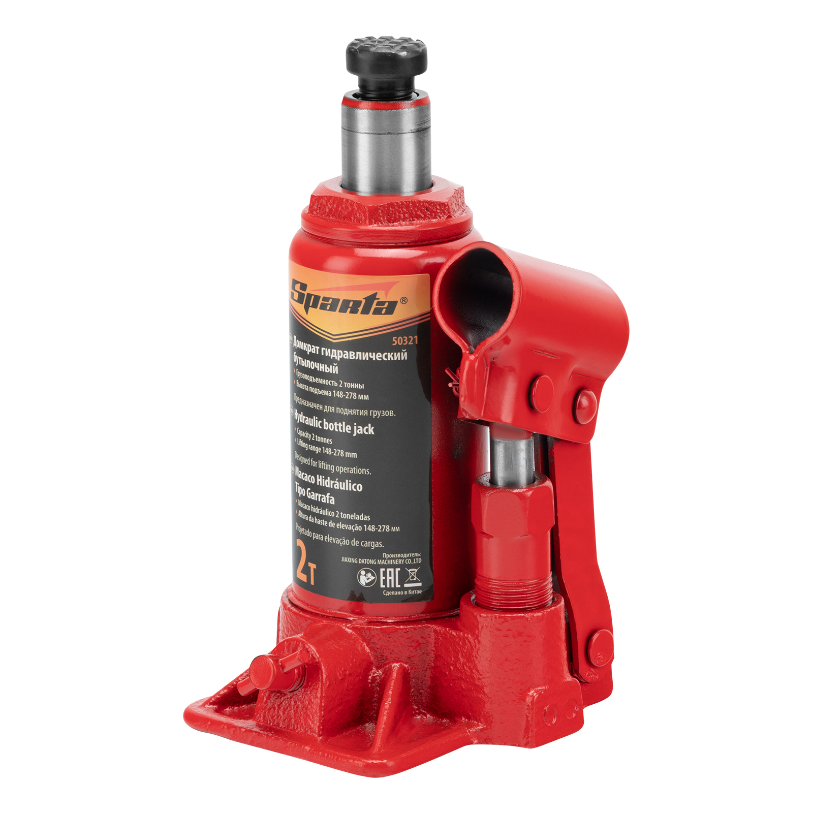 Домкрат гидравлический бутылочный, 2 т, h подъема 148-278 мм Sparta в Екатеринбурге