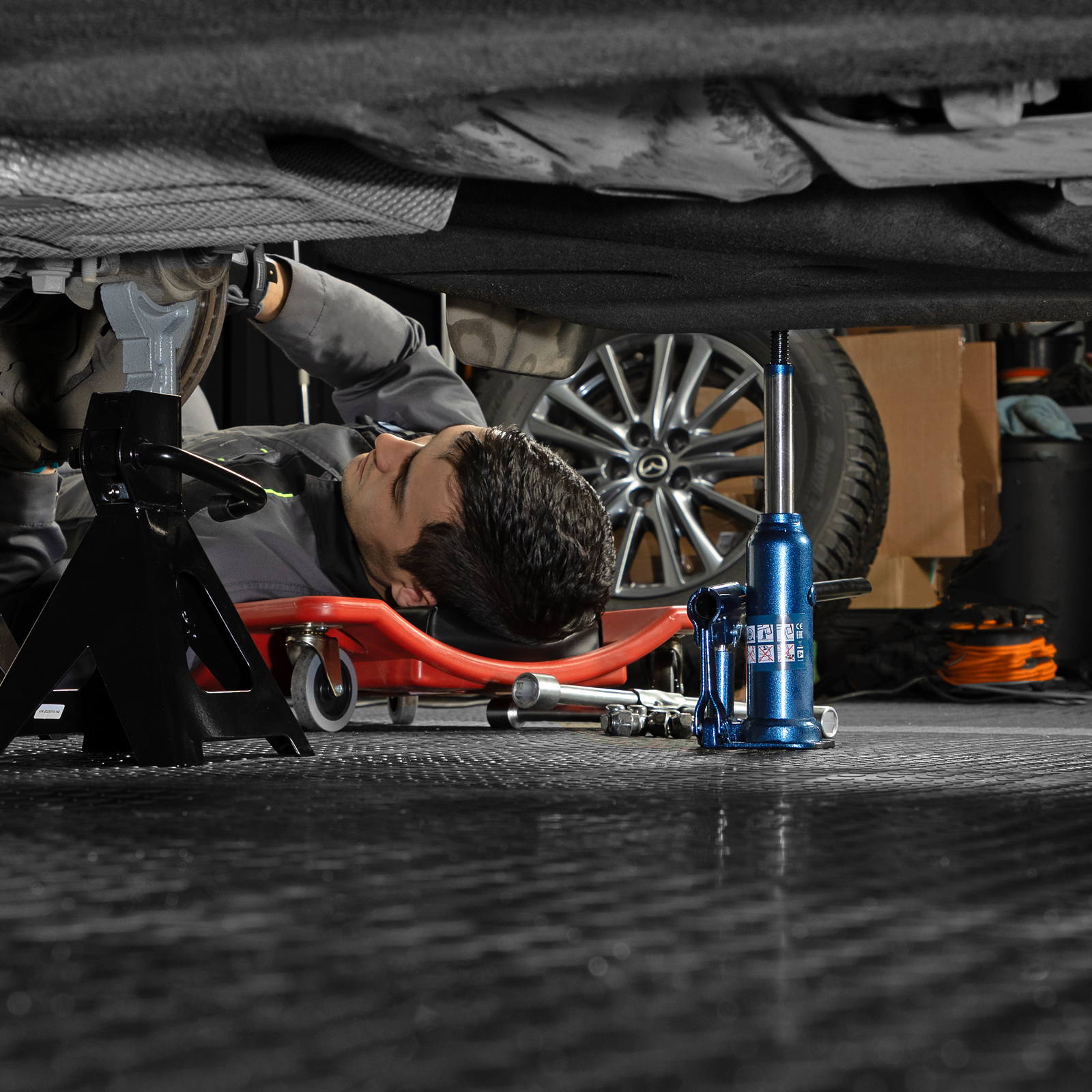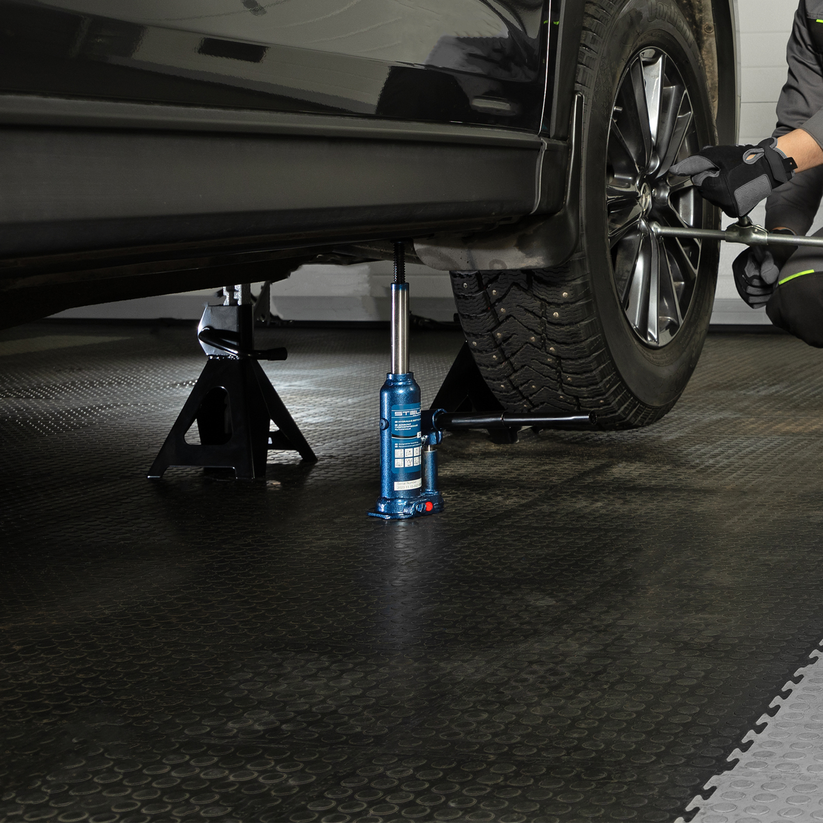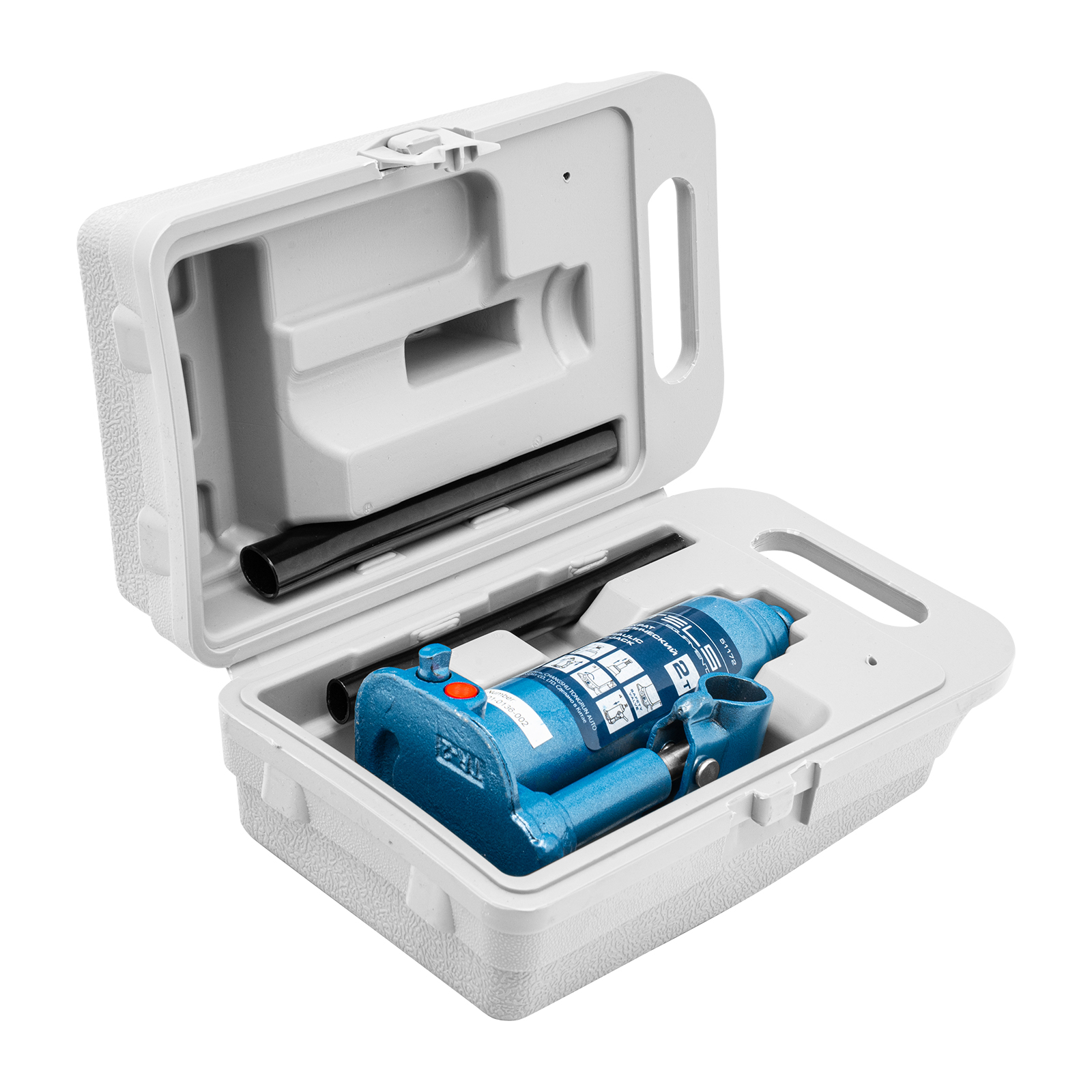 - Удобное хранение и транспортировка — домкрат поставляется в пластиковом кейсе.