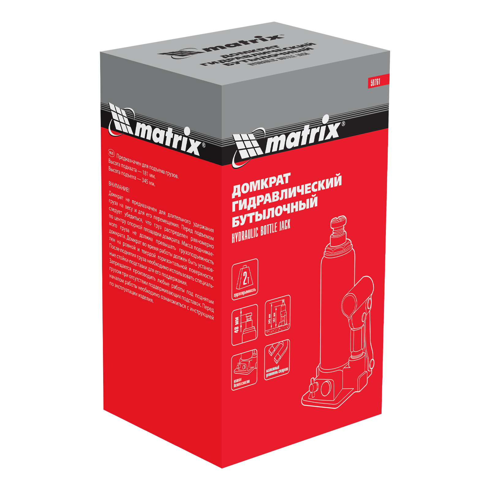 Домкрат гидравлический бутылочный, 2 т, h подъема 181-345 мм Matrix в Екатеринбурге