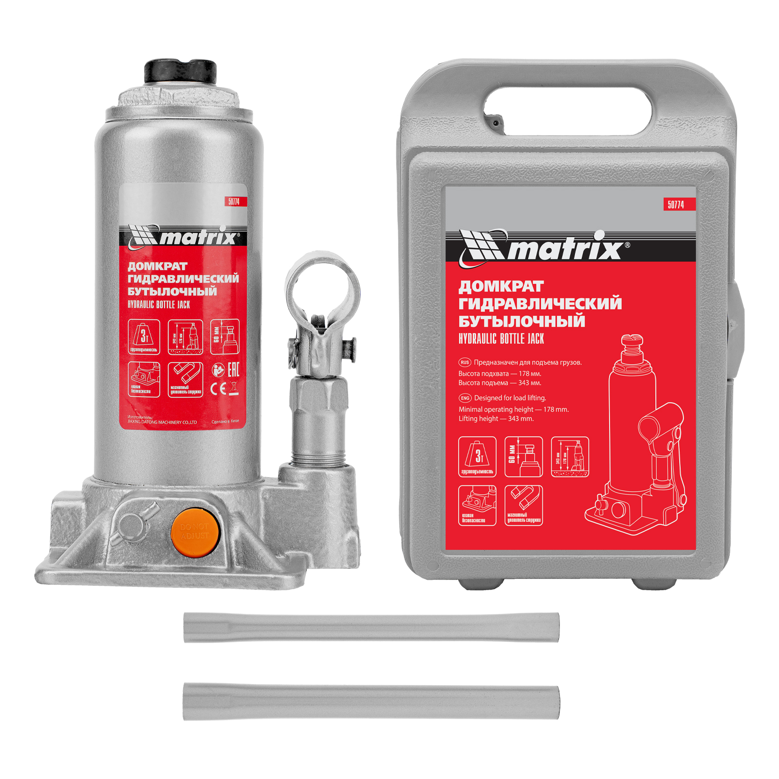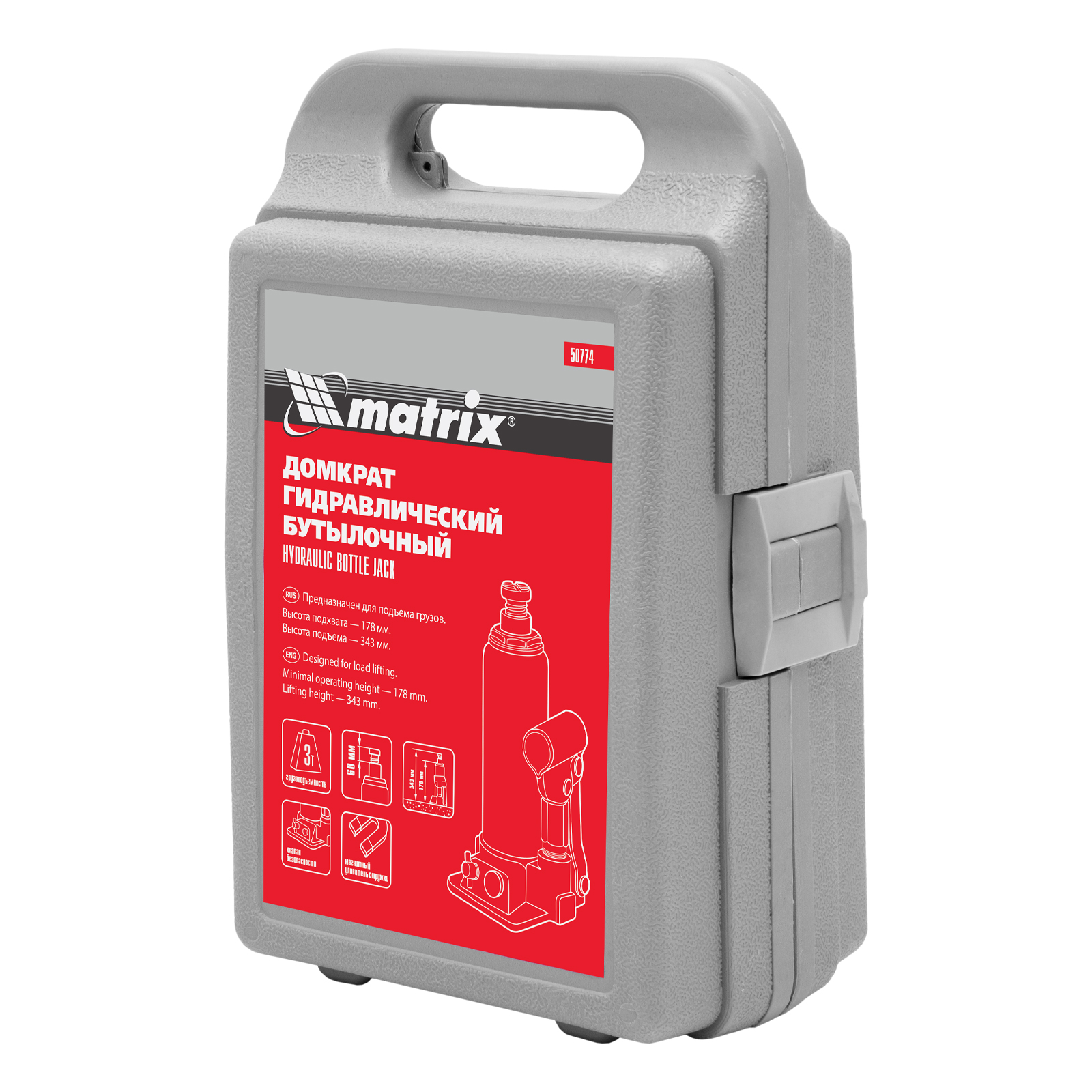 Домкрат гидравлический бутылочный, 3 т, h подъема 178-343 мм, в пластиковом кейсе Matrix в Екатеринбурге