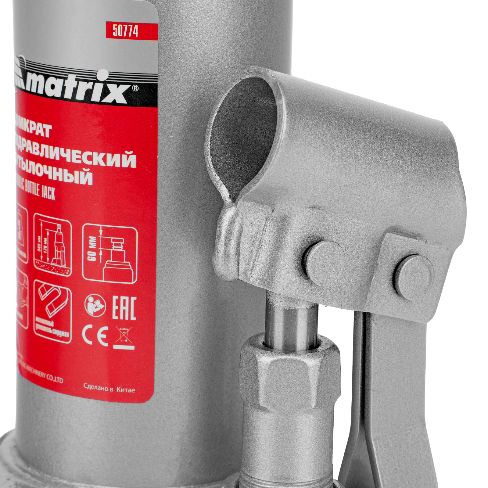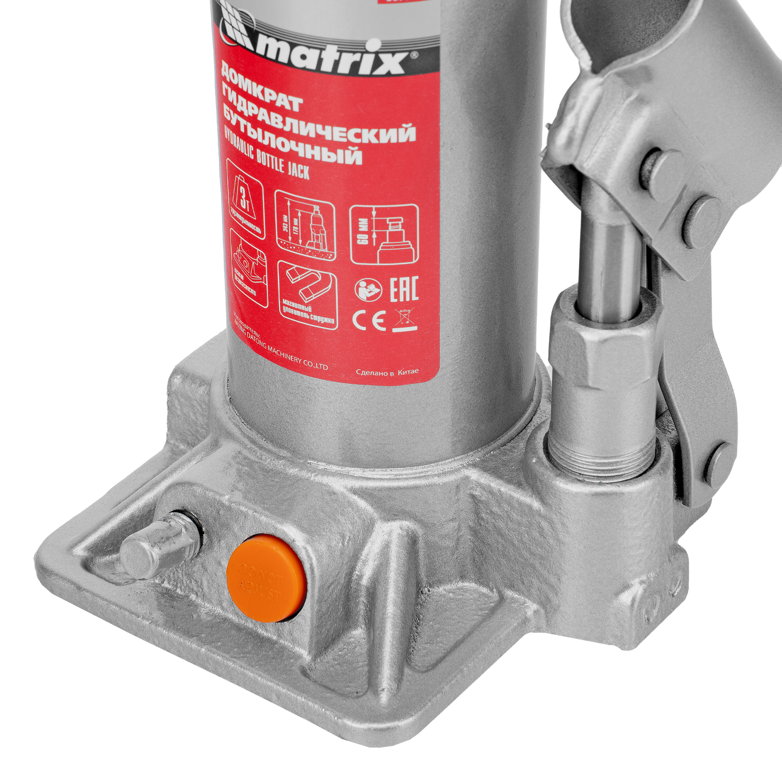 Гидравлический бутылочный домкрат Matrix 50774 позволяет быстро поднимать грузы массой до 3 т на высоту 178-343 мм. Встроенный магнитный уловитель собирает металлическую стружку, предотвращая преждевременный износ резиновых уплотнителей. Домкрат пригодится для полупрофессионального применения.