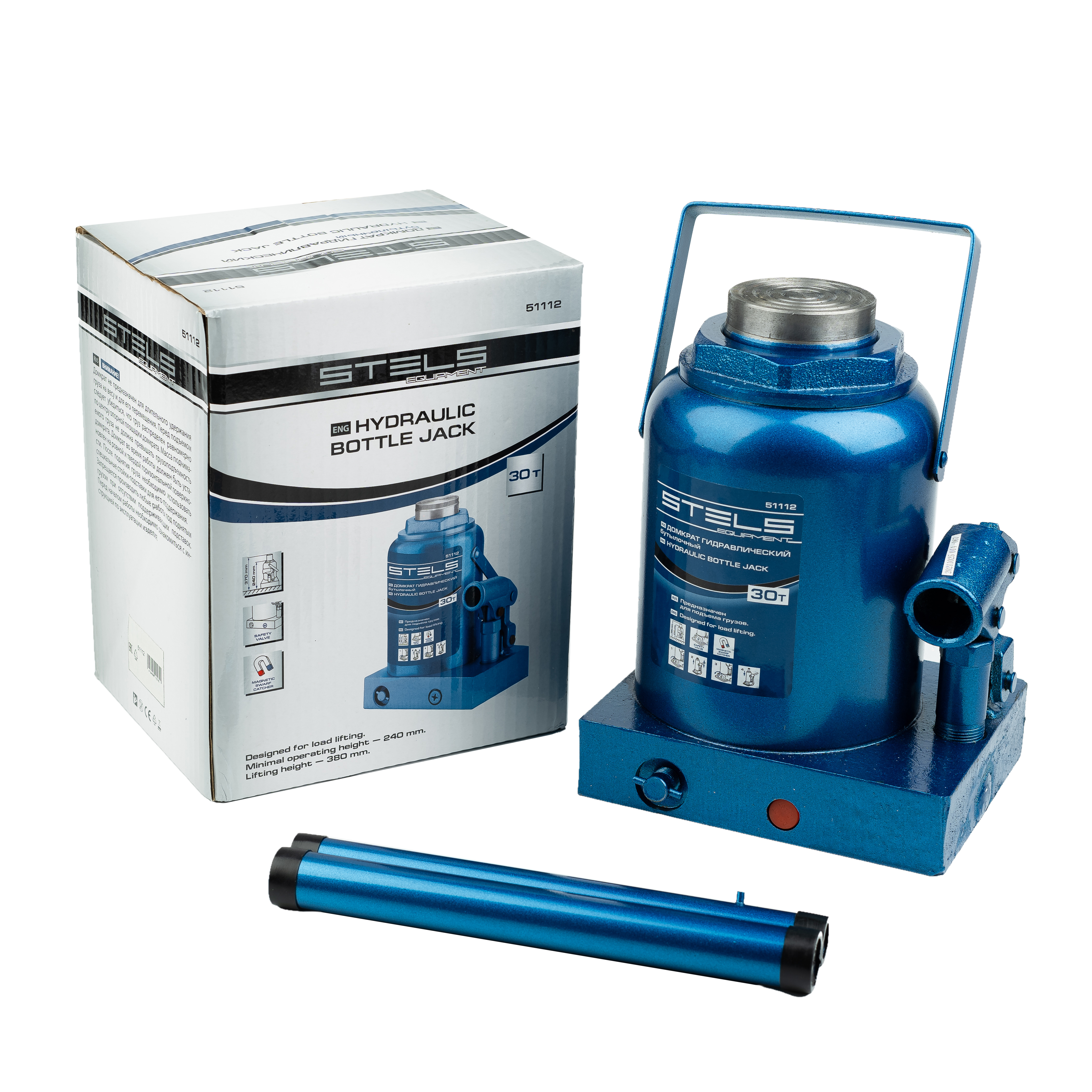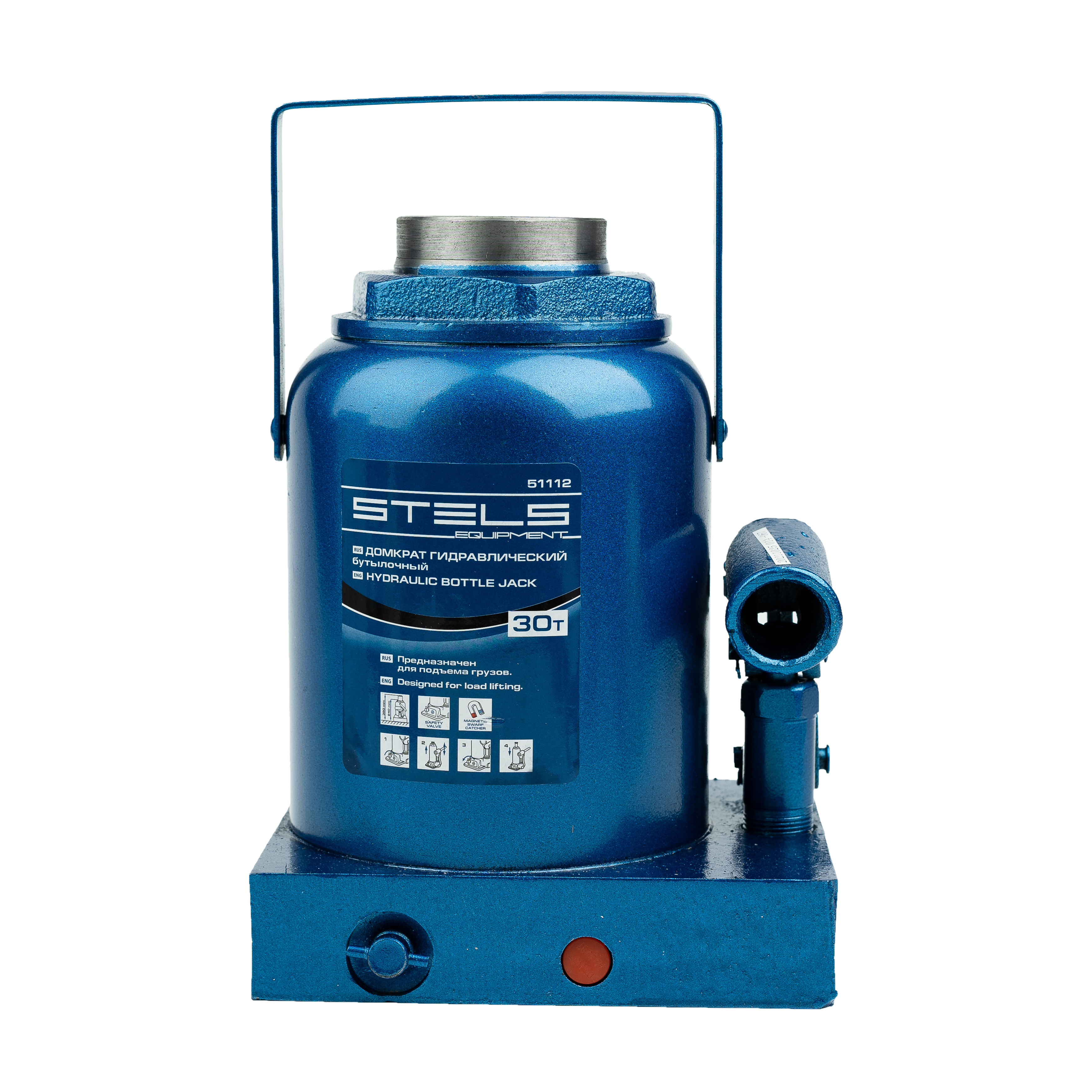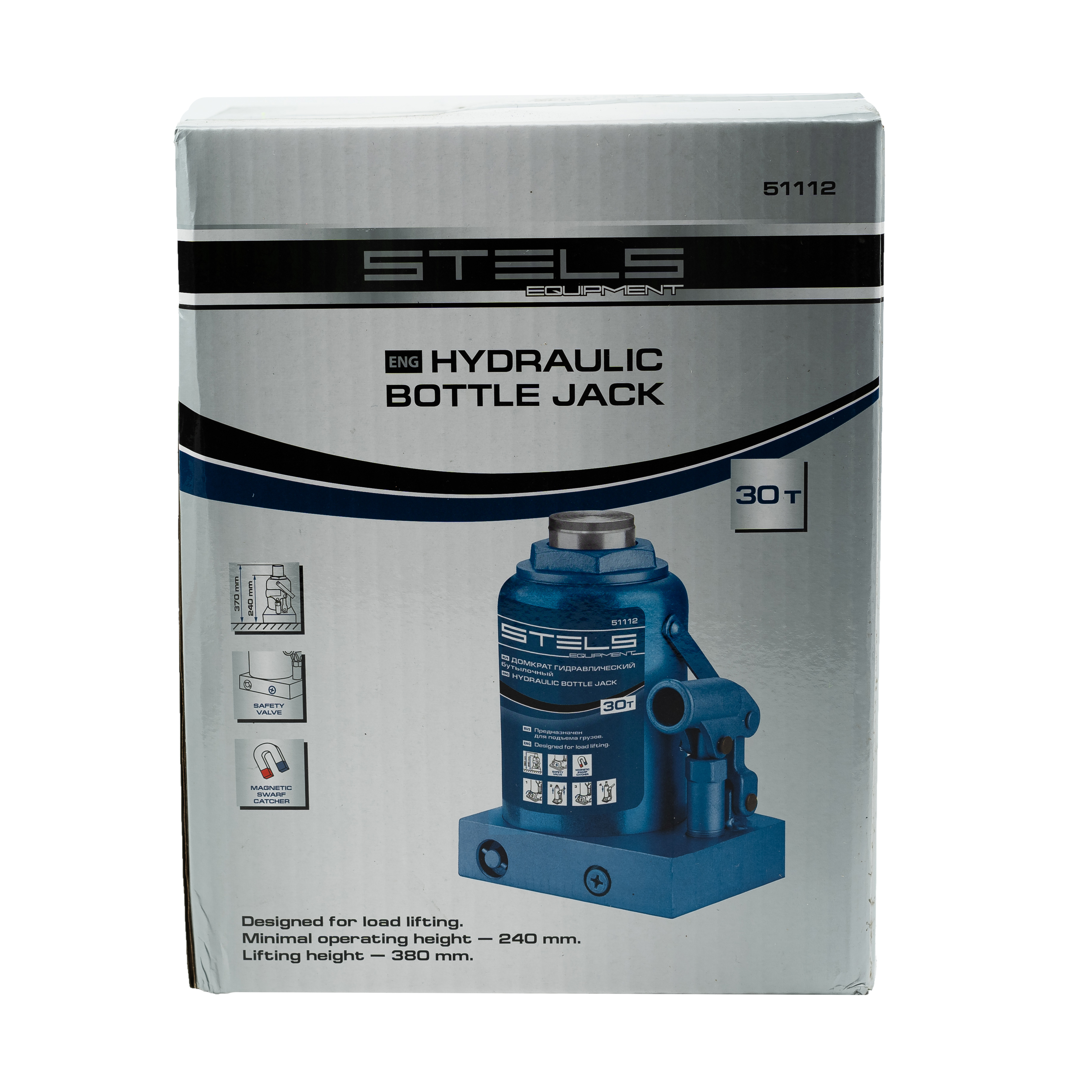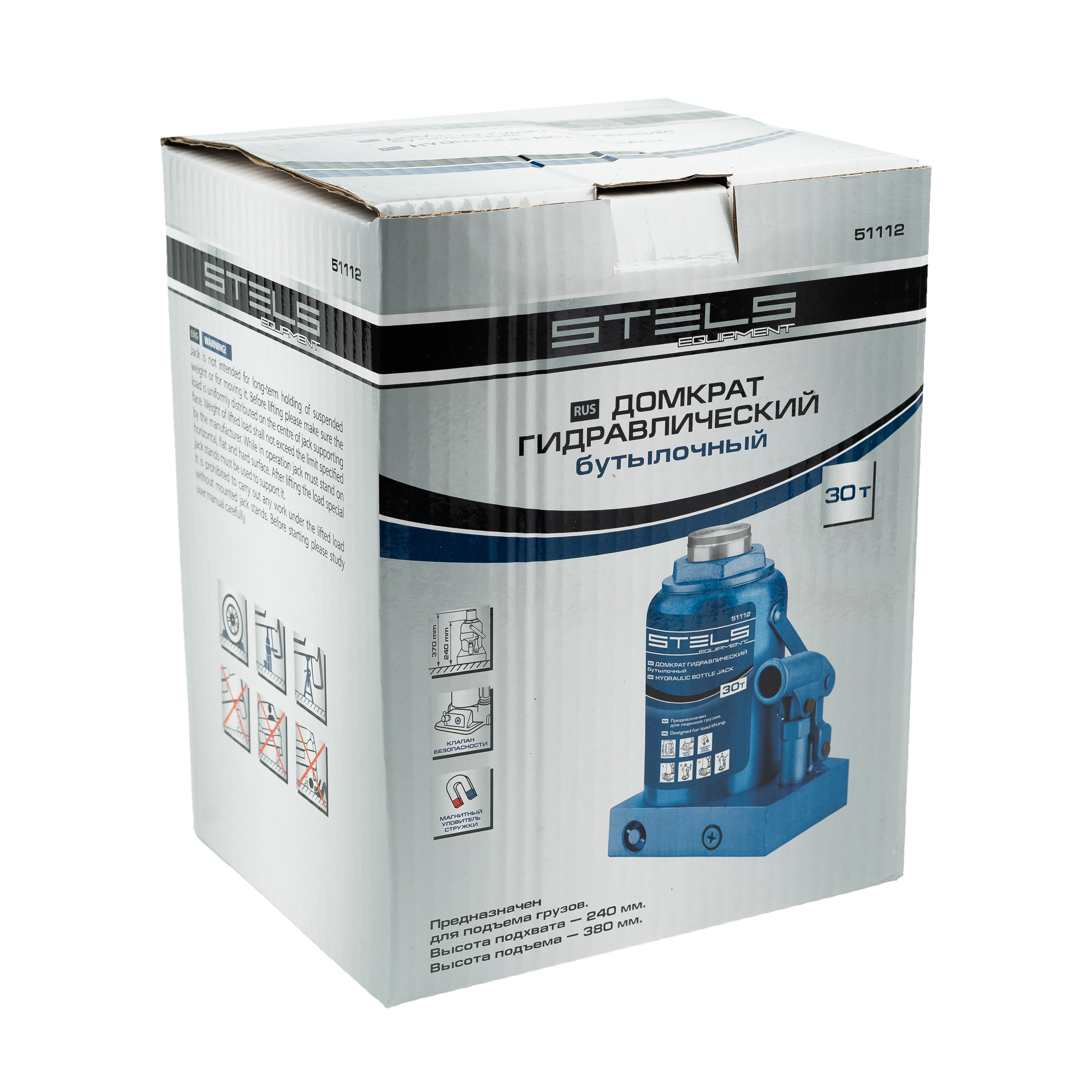 Гидравлический бутылочный домкрат Stels 51112 способен поднимать грузы массой до 30 т на высоту с 244 до 370 мм. Устанавливается на ровной твердой горизонтальной поверхности и позволяет разместить под грузом жесткую опору перед выполнением дальнейших работ. Используется на предприятиях автосервиса, применяется во время ремонта и строительства.