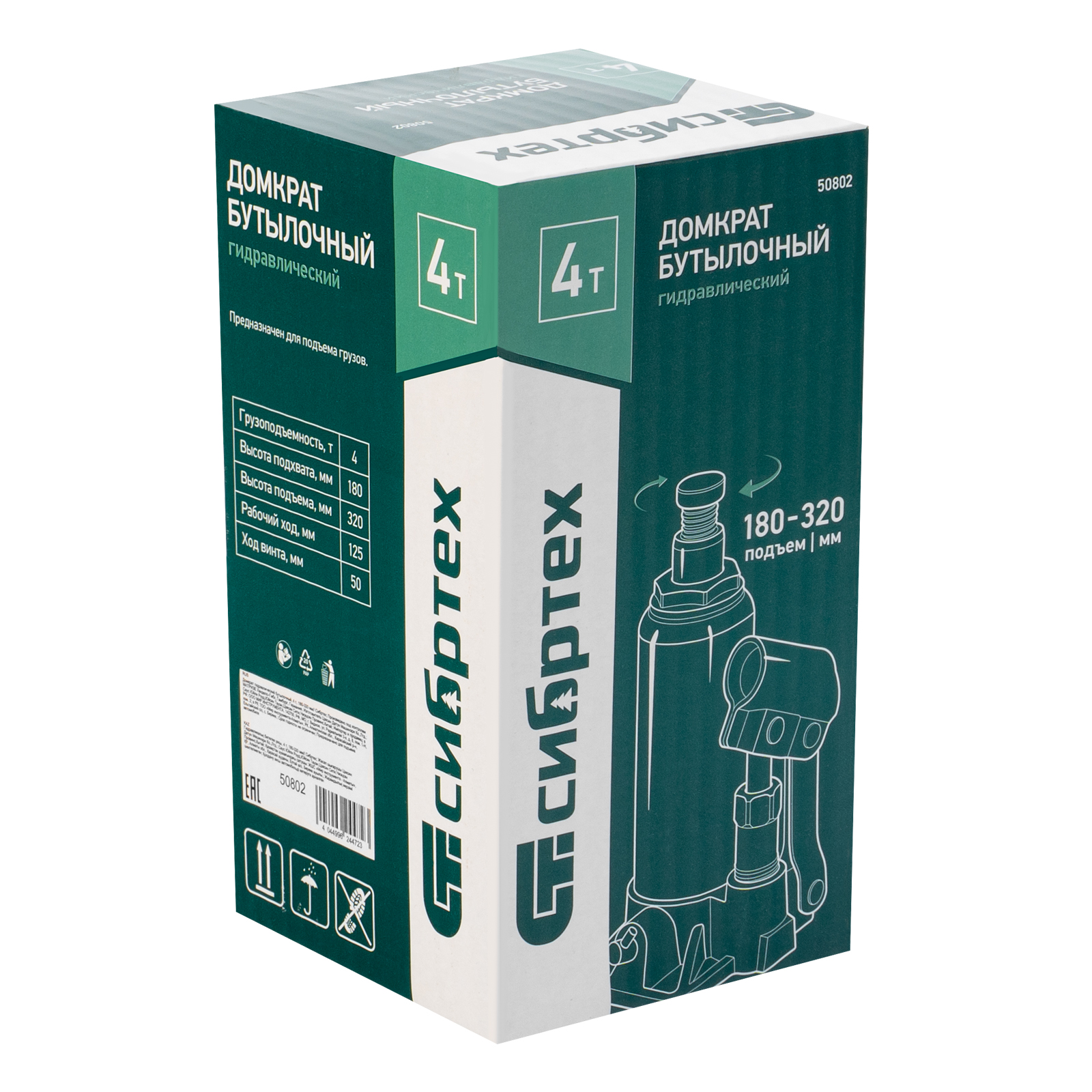 Домкрат гидравлический бутылочный, 4 т, 180-320 мм Сибртех в Екатеринбурге