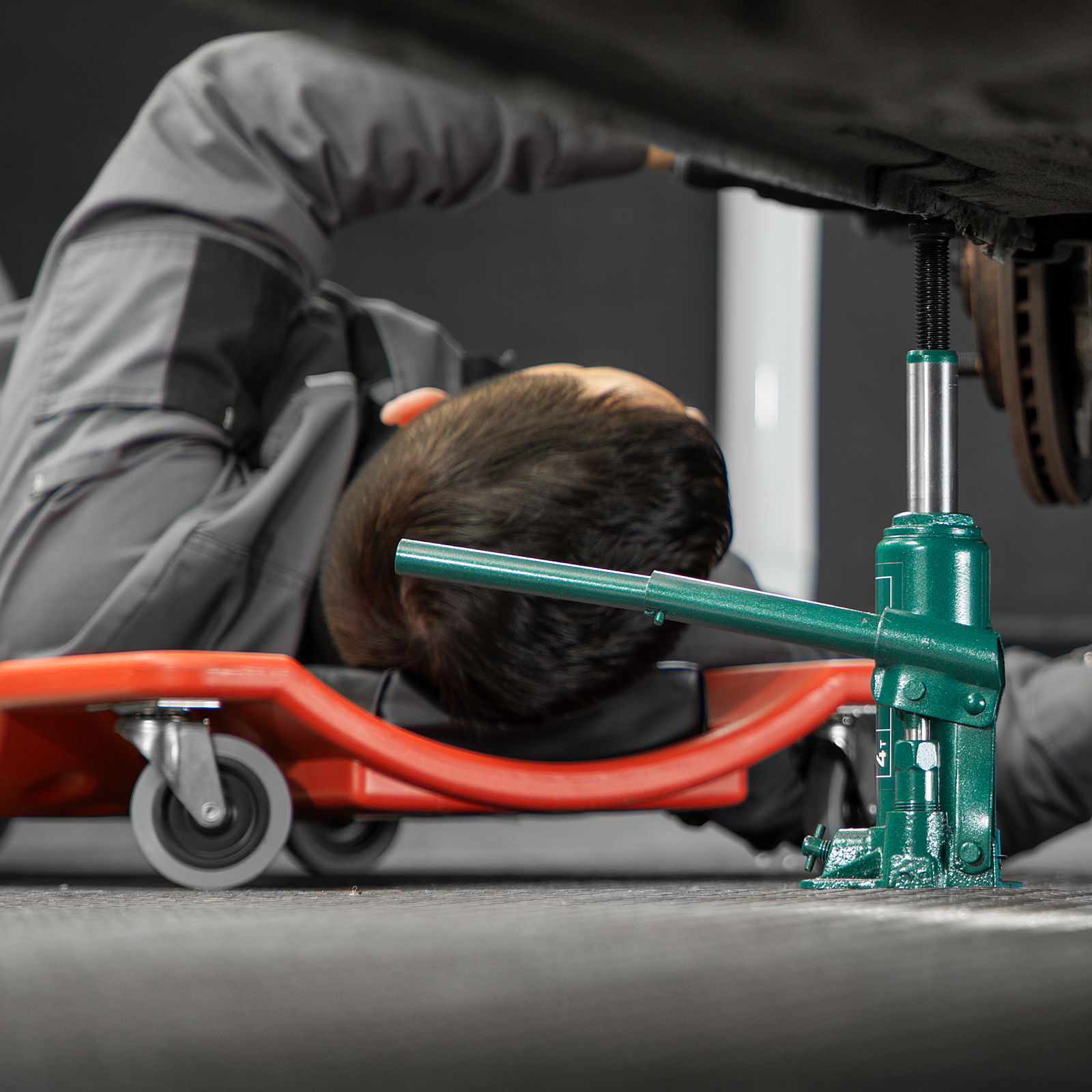 - Удобное хранение и транспортировка — домкрат весит всего 2,2 кг, а благодаря съемному рычагу не занимает много места.