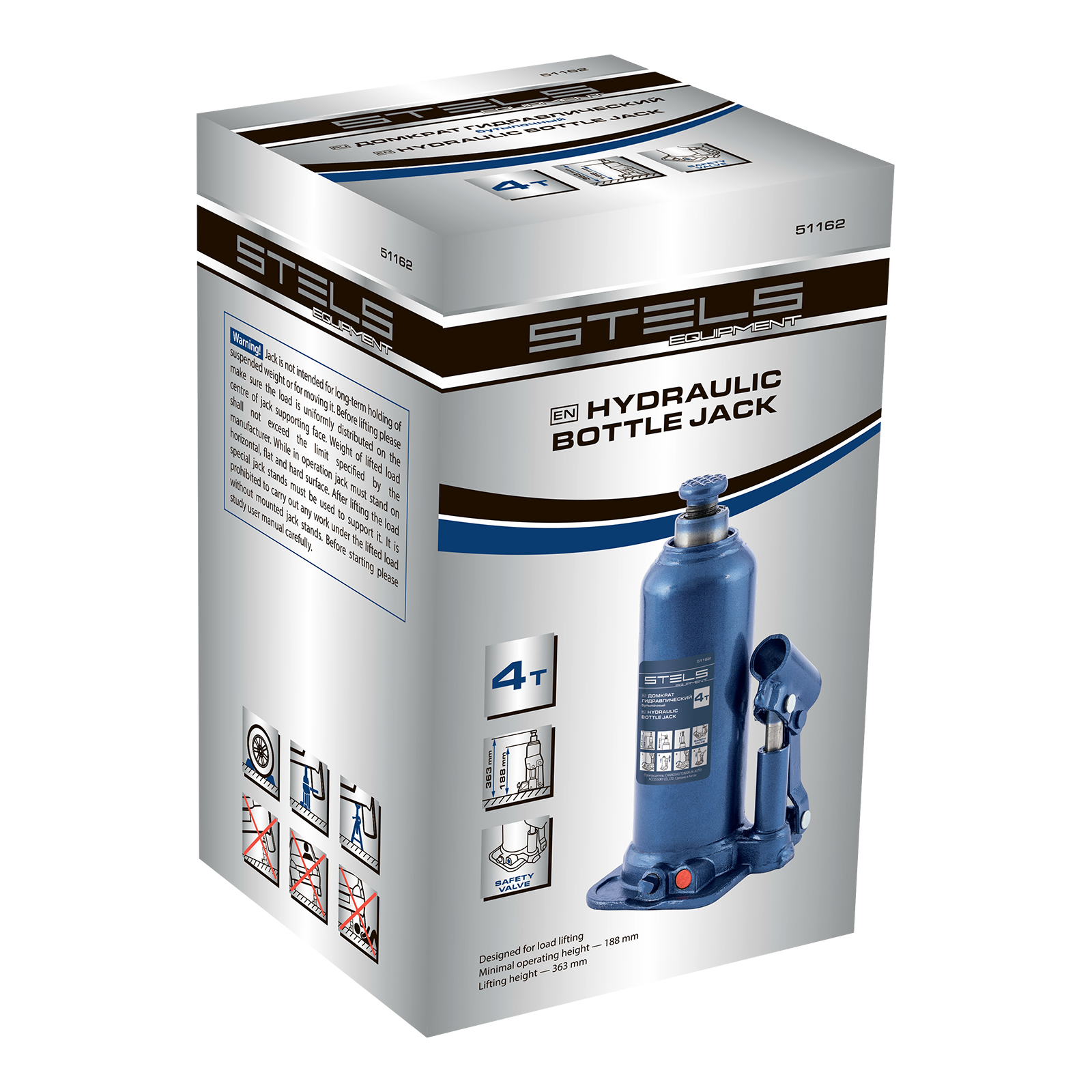 Гидравлический бутылочный домкрат Stels 51162 применяется для быстрого поднятия грузов весом до 4 т на высоту 188-363 мм. Оптимален для автомобилей с большим клиренсом. Домкрат будет полезен автолюбителям и профессионалам для ремонта транспортного средства.