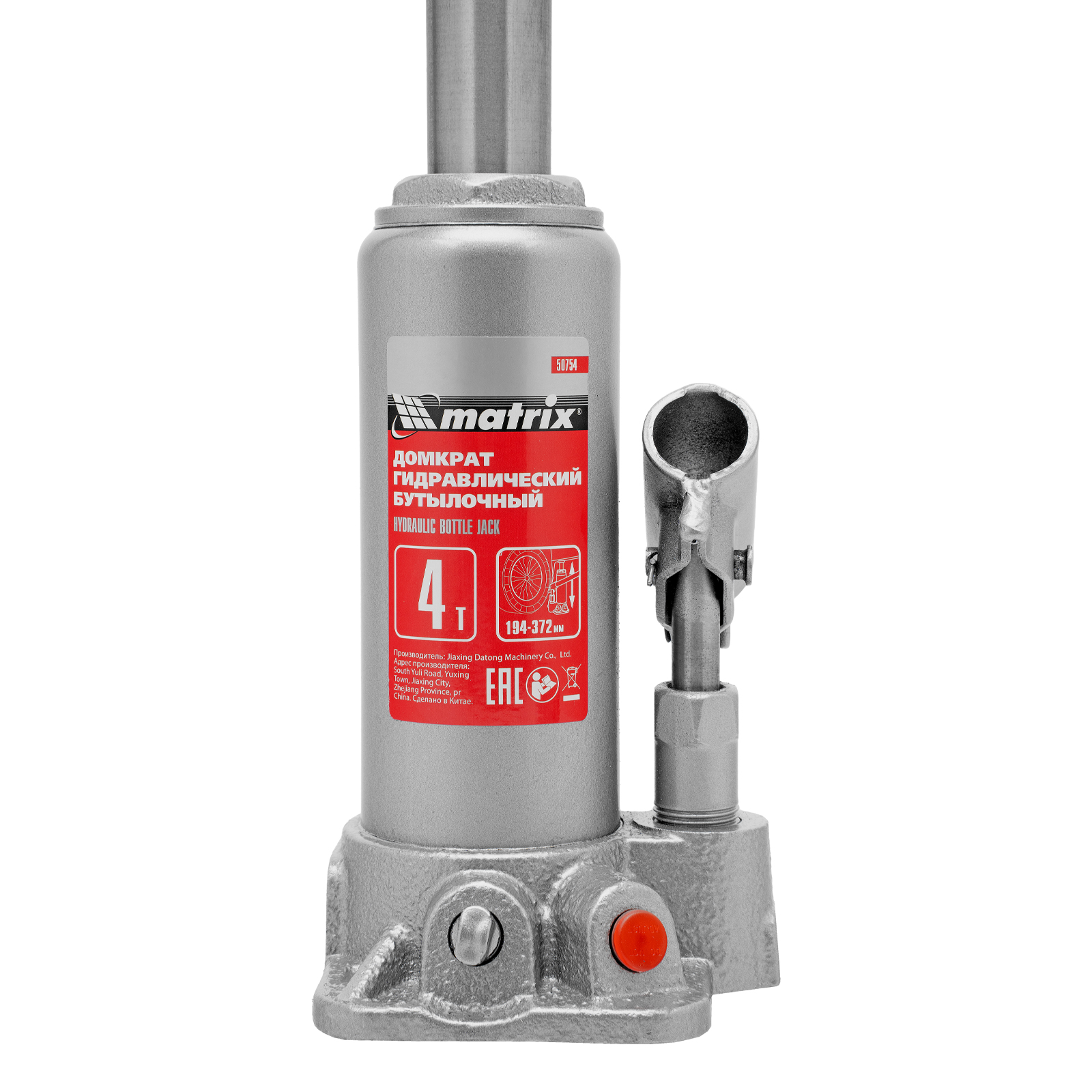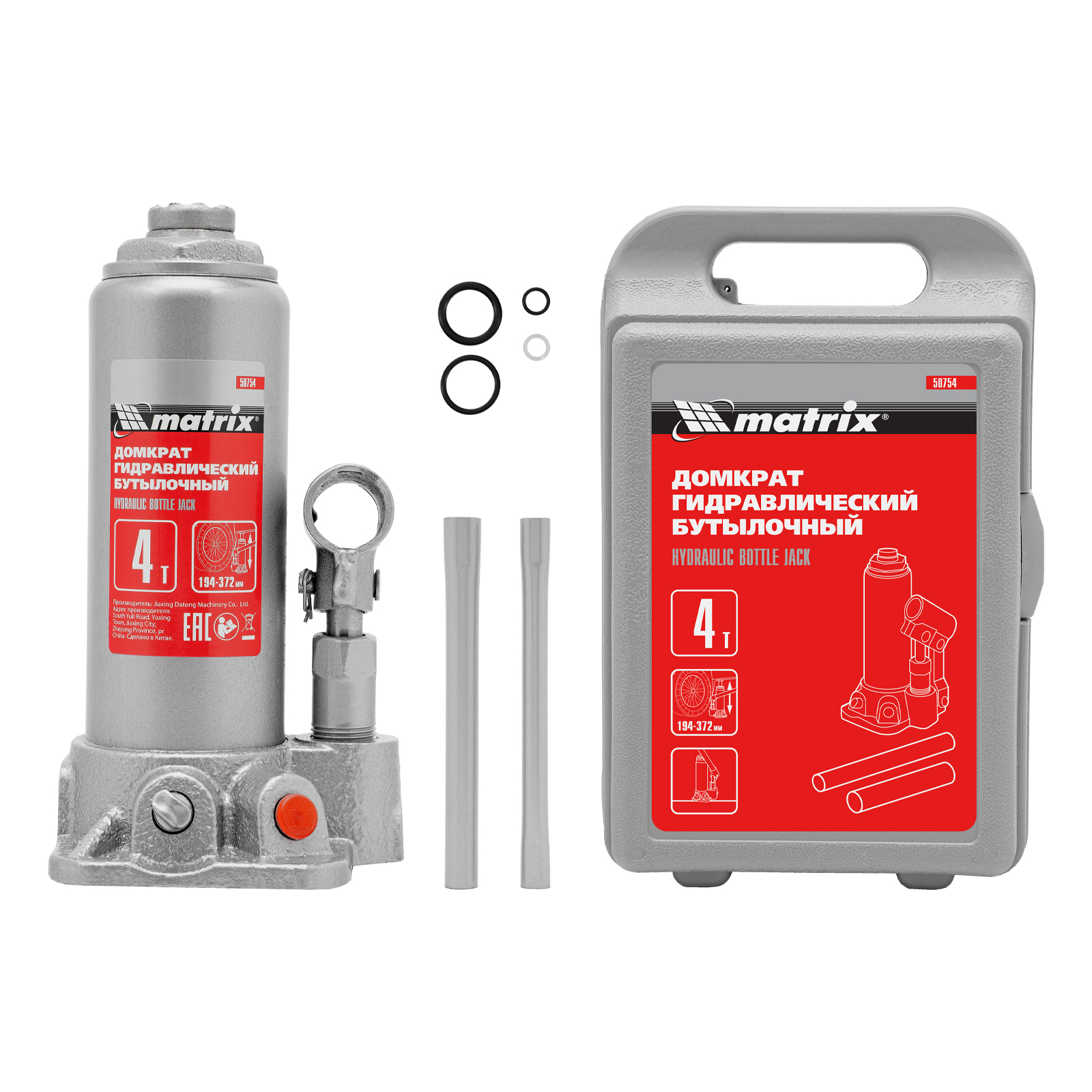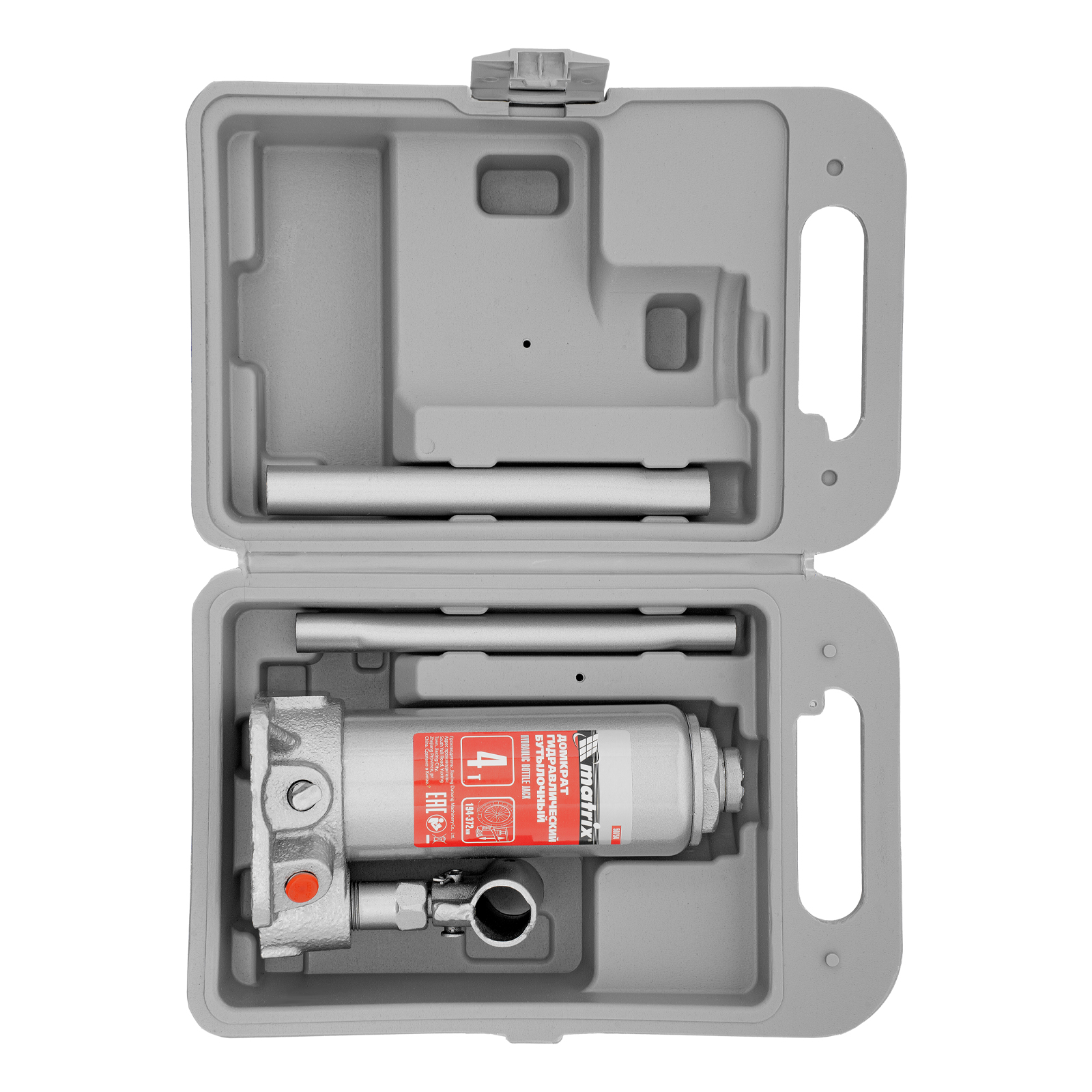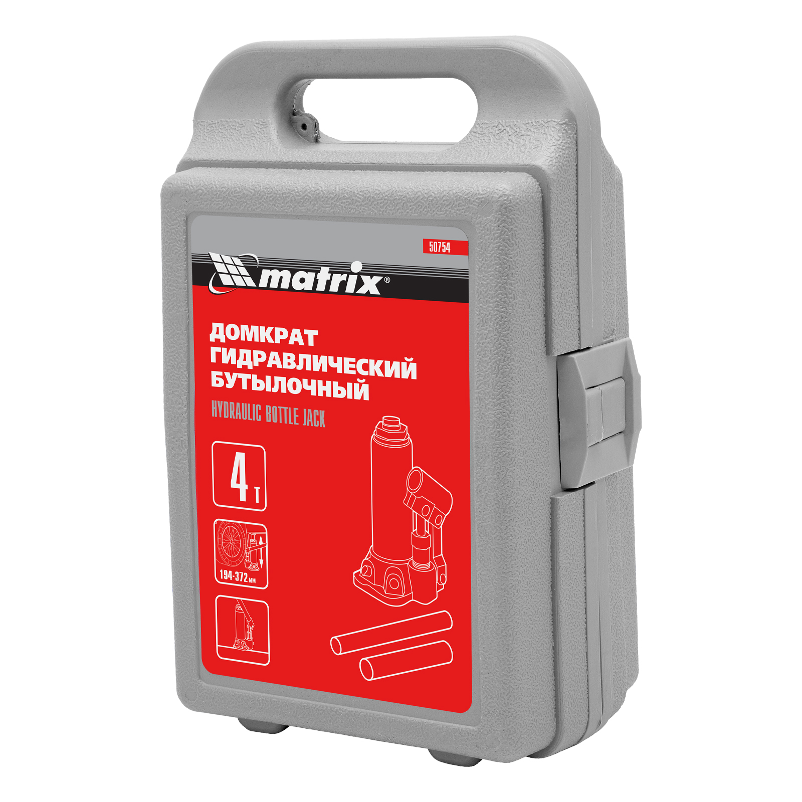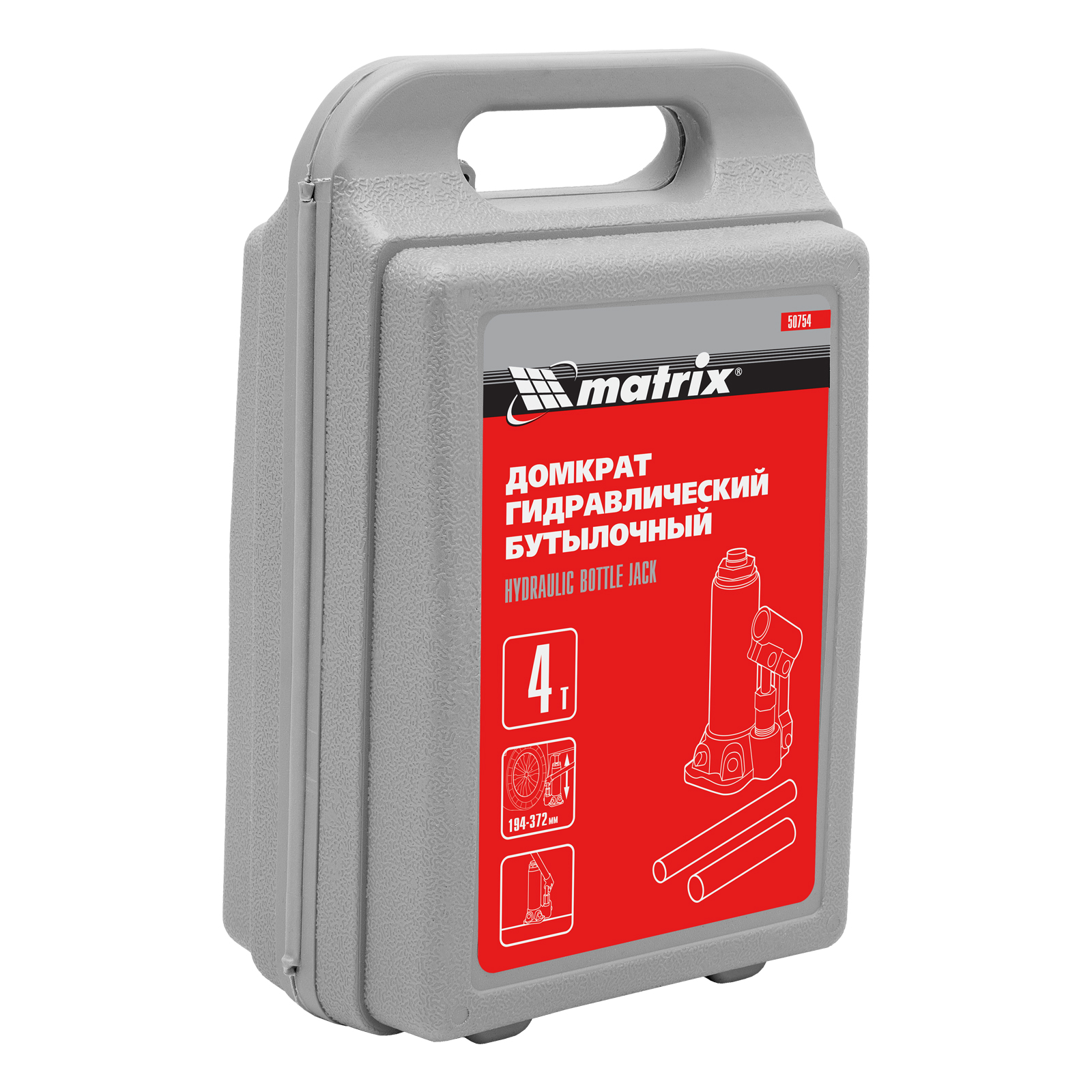 Домкрат гидравлический бутылочный, 4 т, высота подъема 194-372 мм, в пластиковый кейсе Matrix в Екатеринбурге