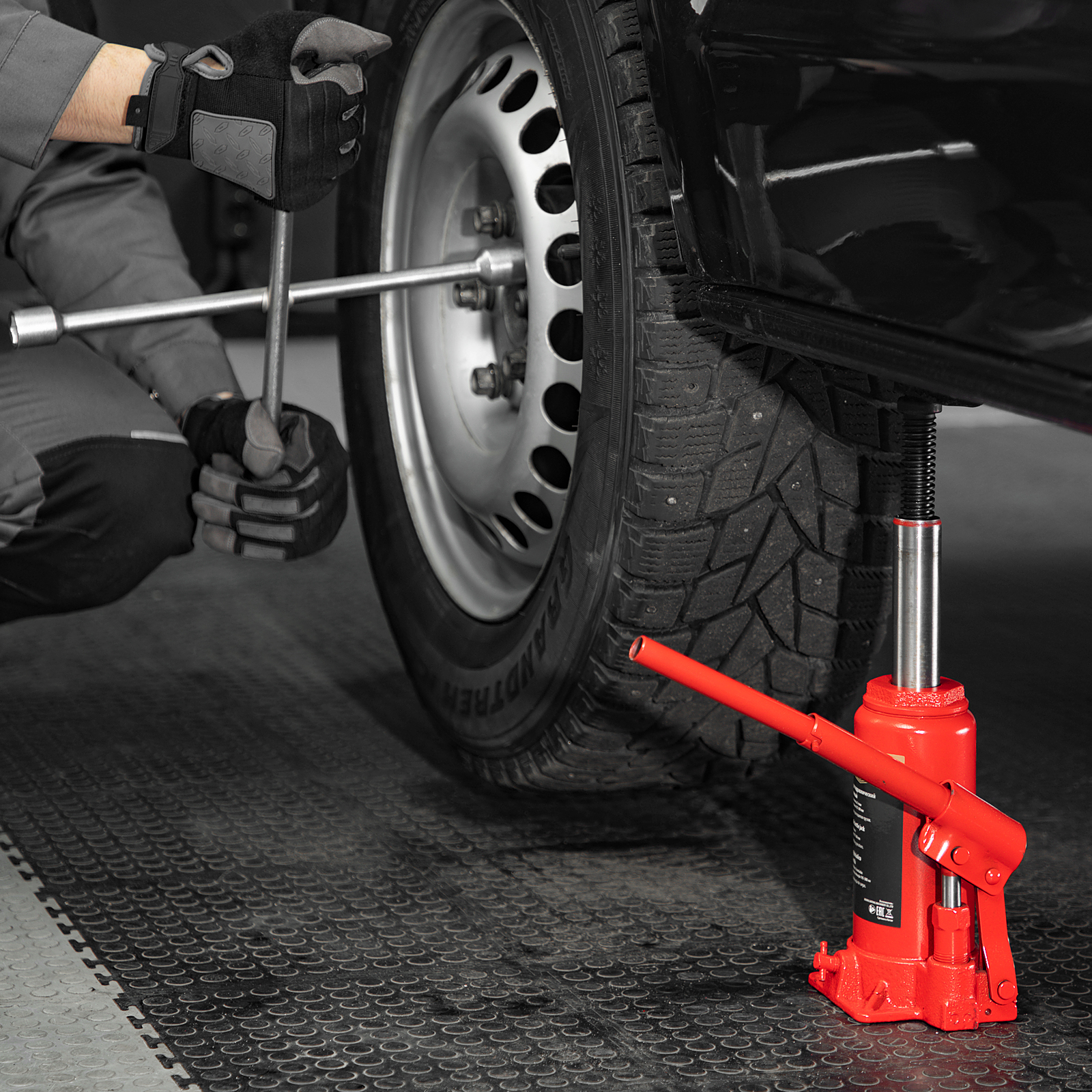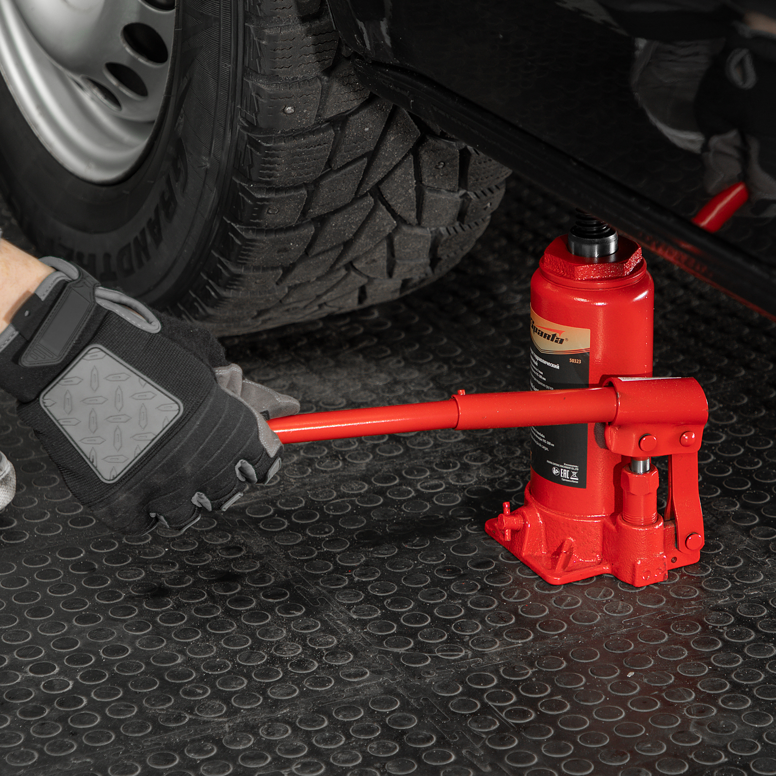 - Удобное хранение и транспортировка — домкрат оборудован съемным рычагом и весит 3,62 кг.
