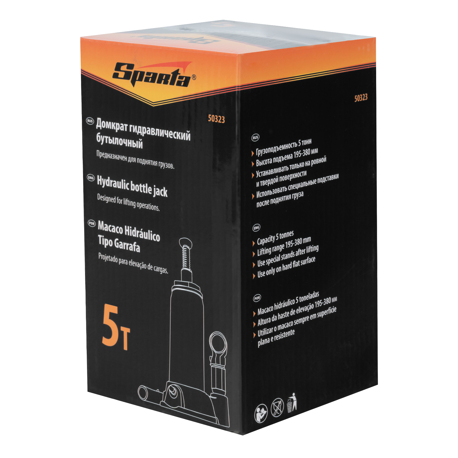 Гидравлический бутылочный домкрат Sparta 50323 рассчитан на подъем грузов весом до 5 т на высоту от 195 до 380 мм. Он пригодится как автолюбителям в гараже, так и профессиональным мастерам в автосервисах. Домкрат обеспечивает плавный подъем груза без особых усилий со стороны пользователя.