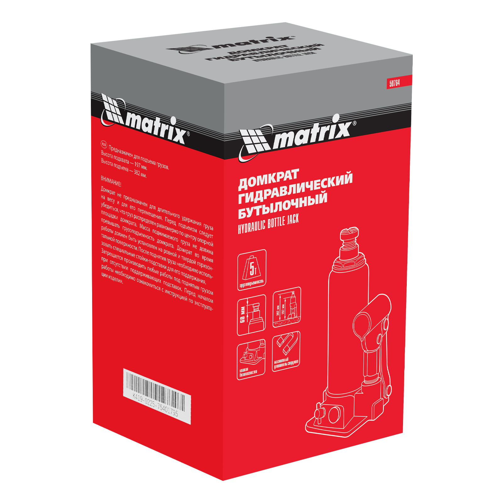 Домкрат гидравлический бутылочный, 5 т, h подъема 197-382 мм Matrix в Екатеринбурге