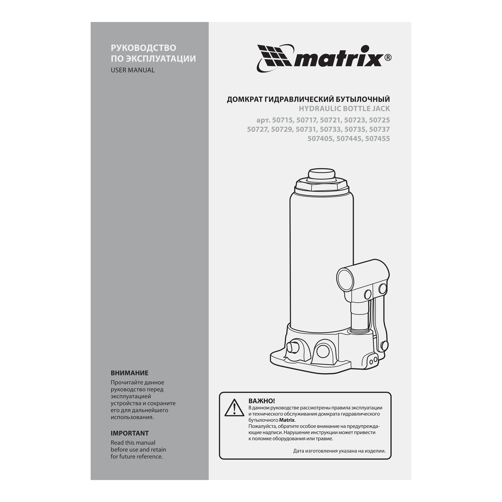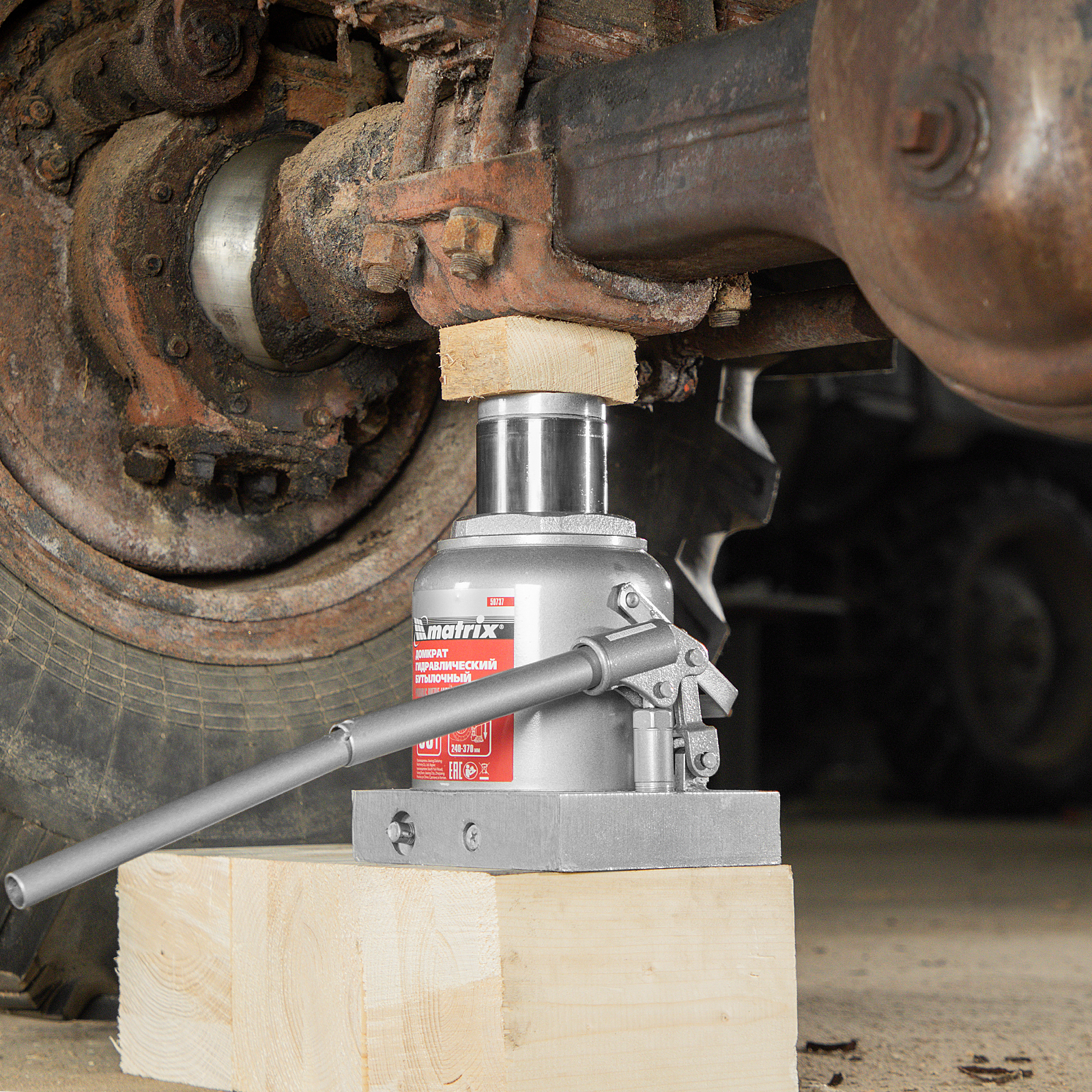 Домкрат гидравлический бутылочный Matrix 50737 используется для поднятия грузов массой до 50 т на высоту 240-370 мм. Подходит для автомобилей с высоким клиренсом. Домкрат будет полезен автолюбителям в гараже и дороге, а также сотрудникам СТО.