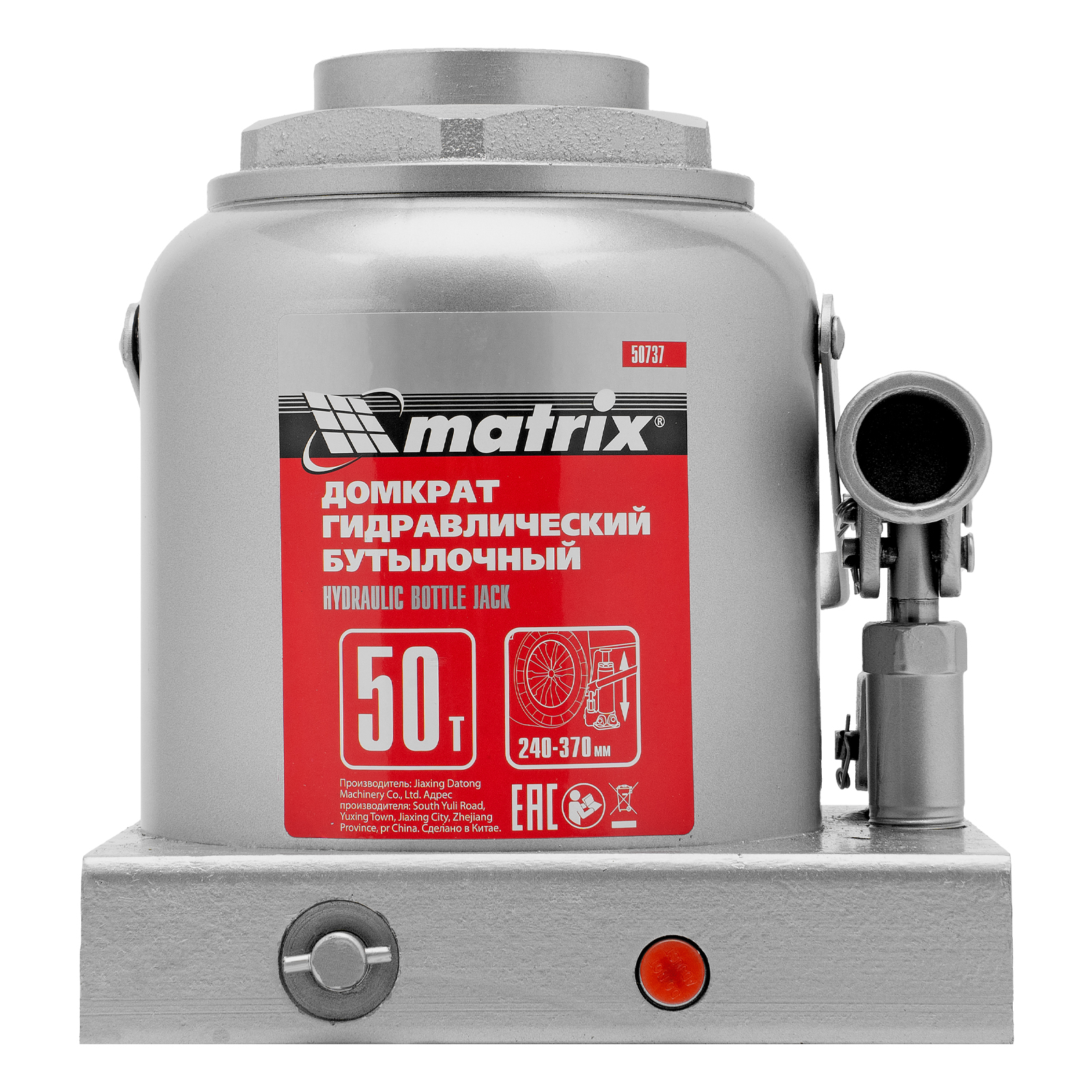 Домкрат гидравлический бутылочный, 50 т, высота подъема 240-370 мм Matrix в Екатеринбурге