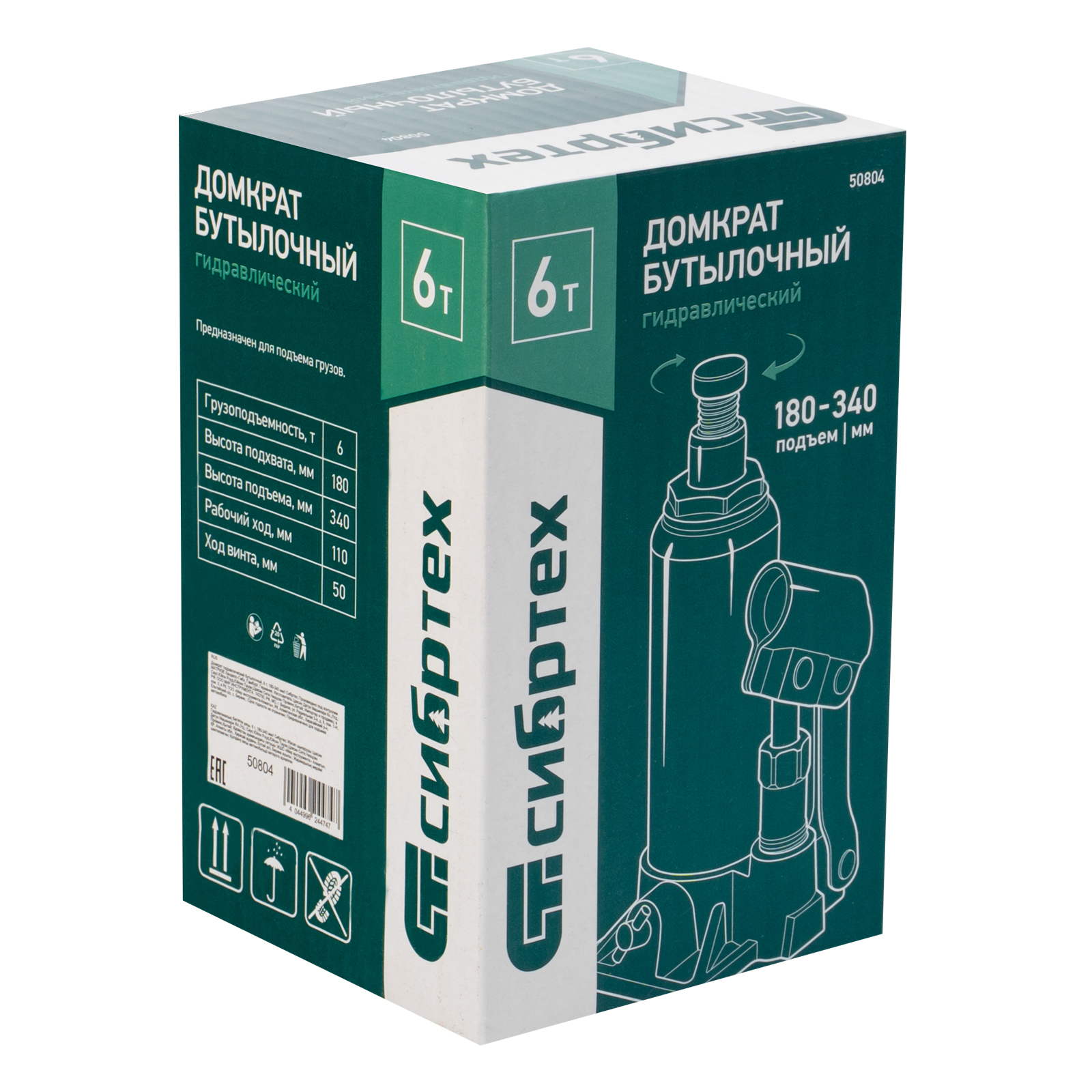 Домкрат гидравлический бутылочный, 6 т, 180-340 мм Сибртех в Екатеринбурге